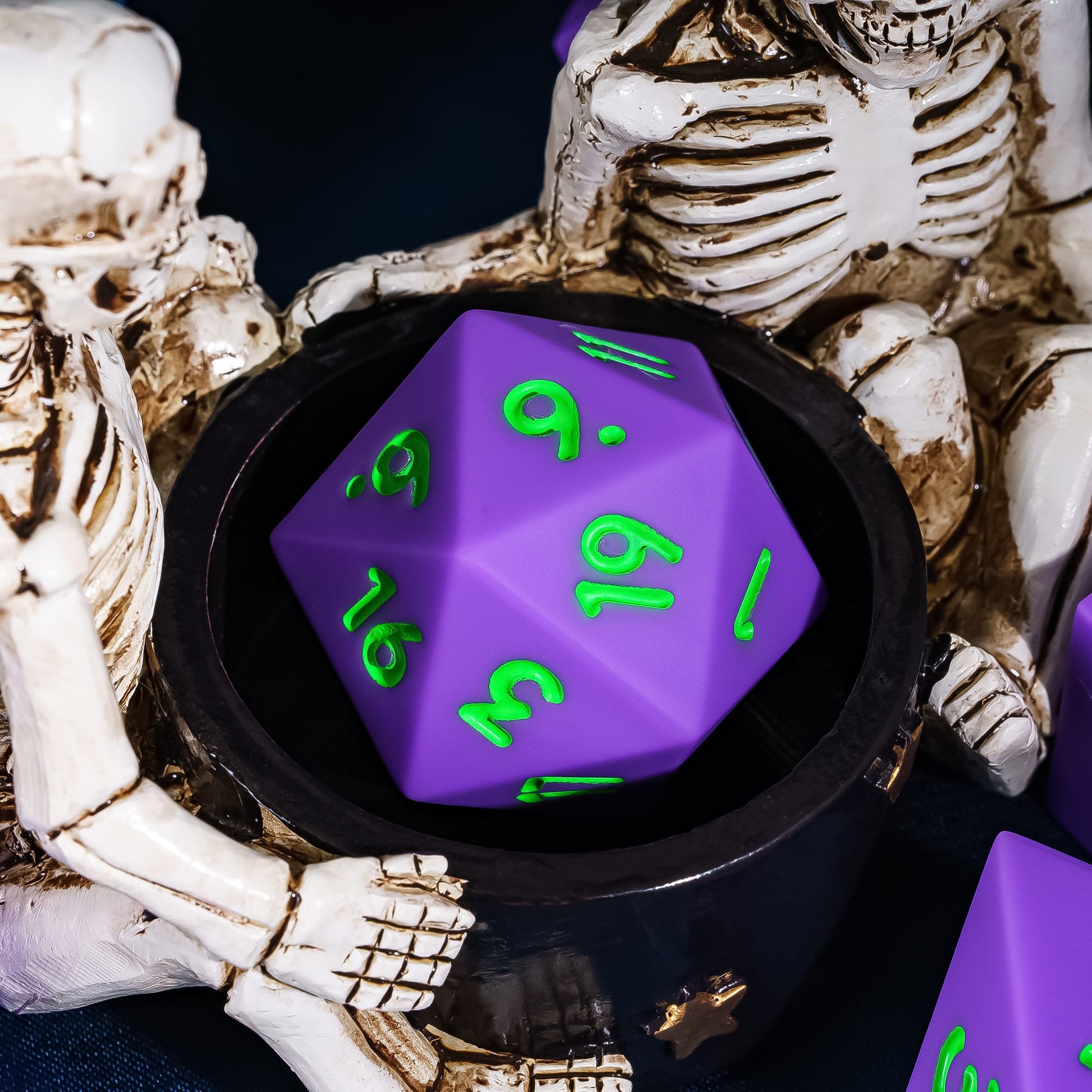 Joya Dice® Dungeons and Dragons Dobbelstenen Set – 7 Stuks Siliconen Bounce Dice in Paars met Groen, Extra Groot Formaat