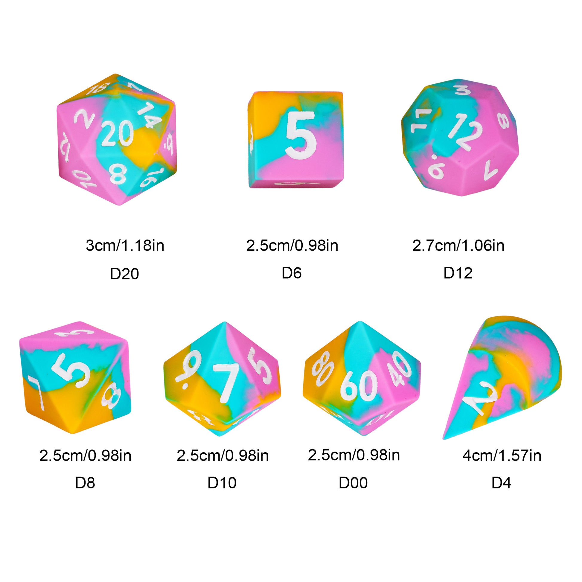 Deze 7-delige siliconen D&D dobbelstenen set bevat: