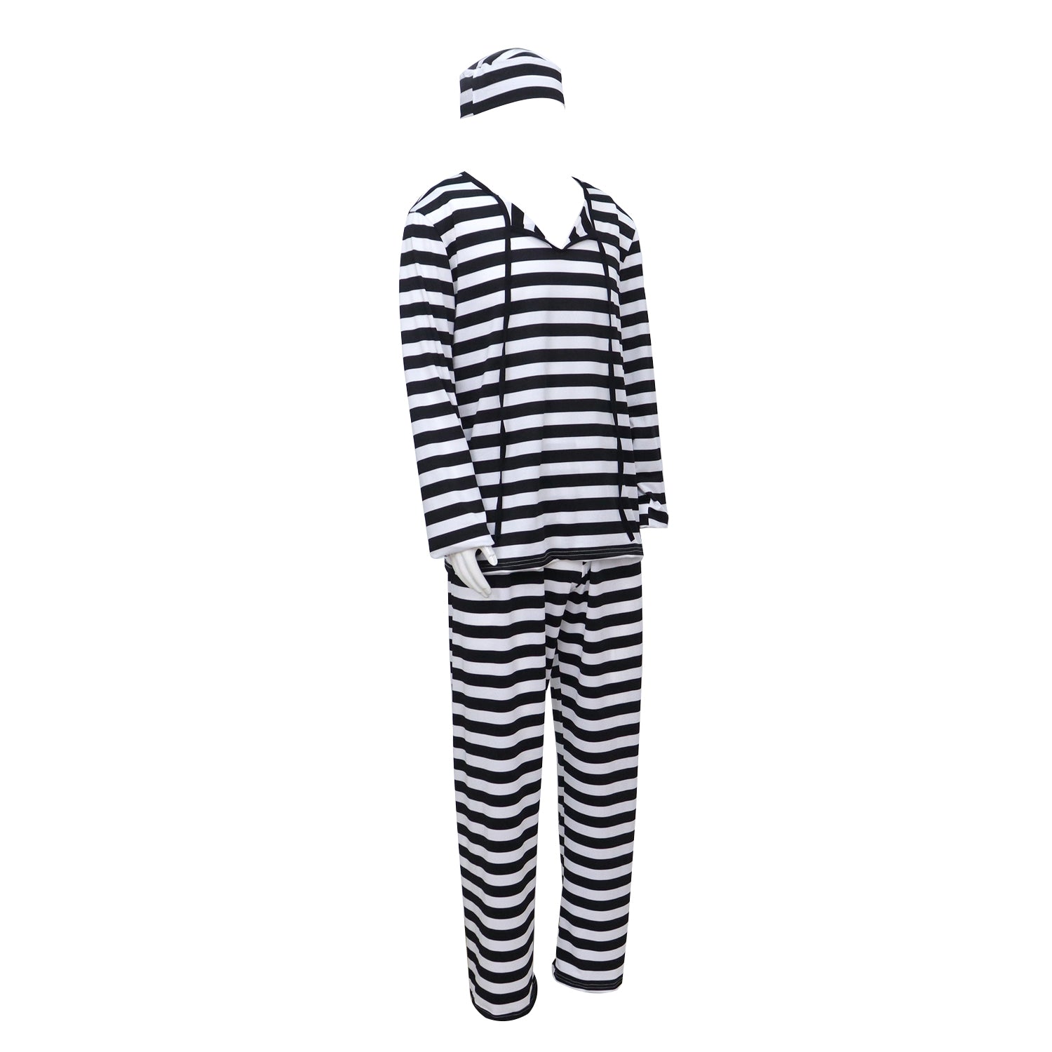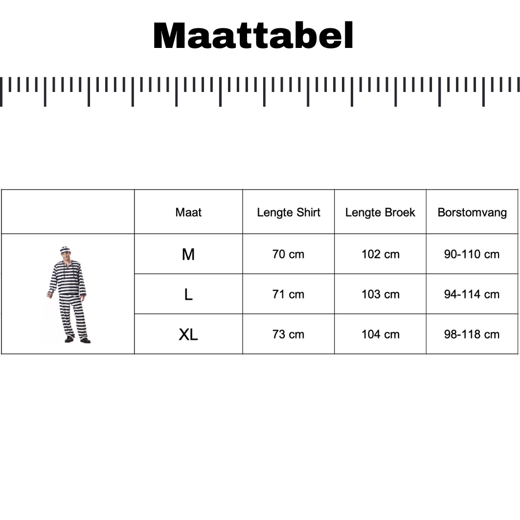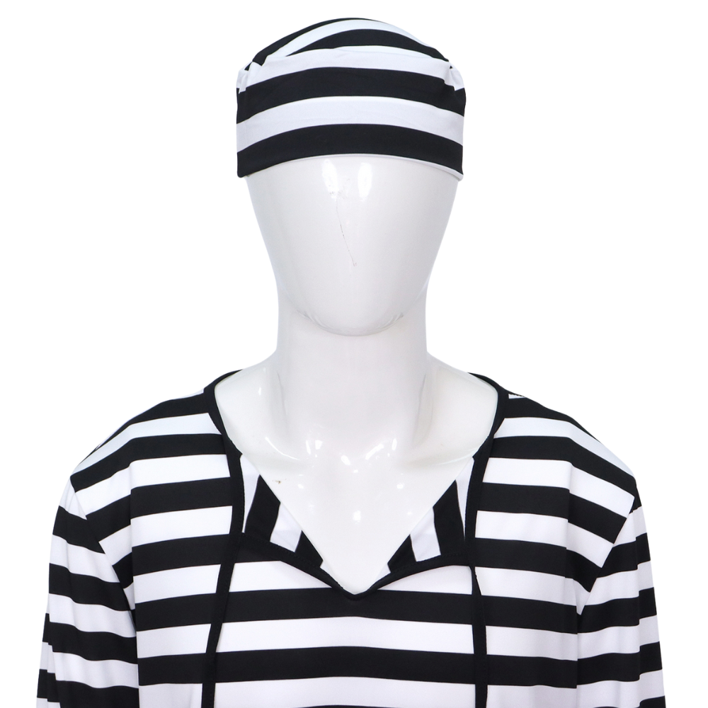 Dit boevenpak is ontworpen met oog voor detail, zodat jij je helemaal kunt inleven in de rol van een ontsnapte crimineel. Het traditionele zwart-witte streepdesign geeft een klassieke gevangenislook, terwijl de bijpassende muts je outfit helemaal afmaakt. Het comfortabele materiaal en de losse pasvorm zorgen ervoor dat je je vrij kunt bewegen, perfect voor een avond vol plezier.