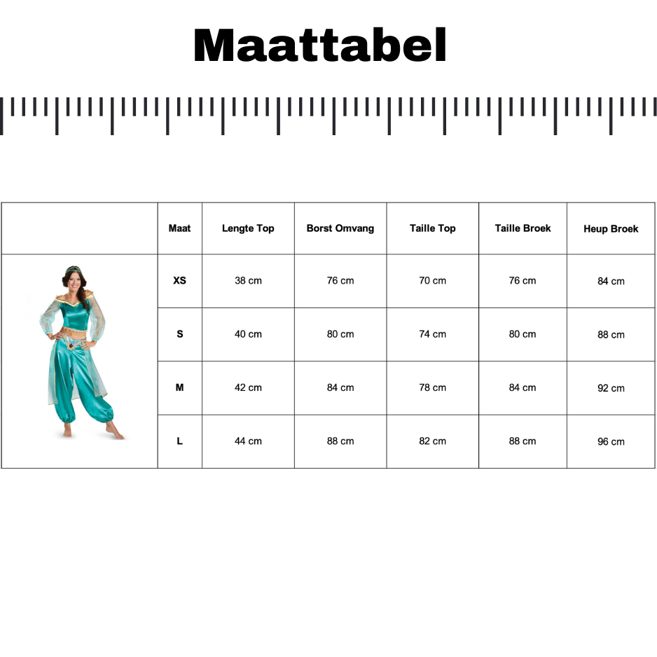 - Iconisch Design: Deze outfit vangt perfect de magie en elegantie van de prinses en maakt je direct herkenbaar als een echte Arabische prinses.