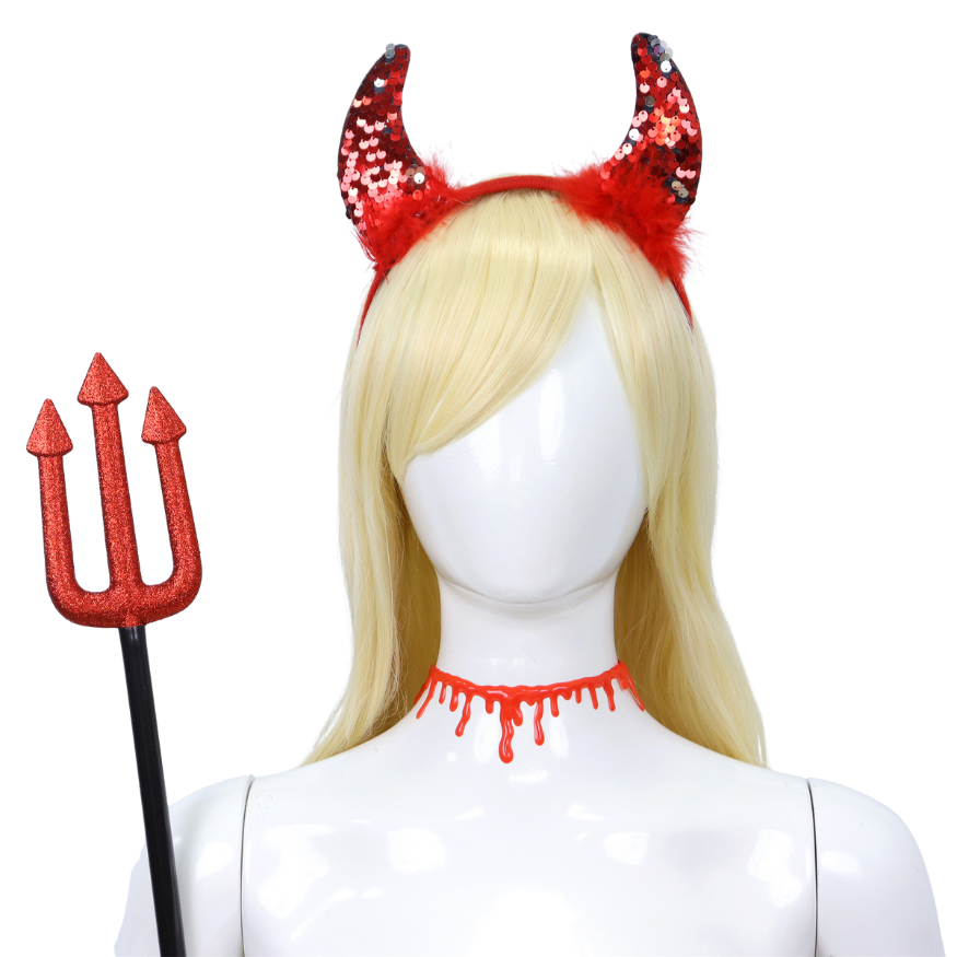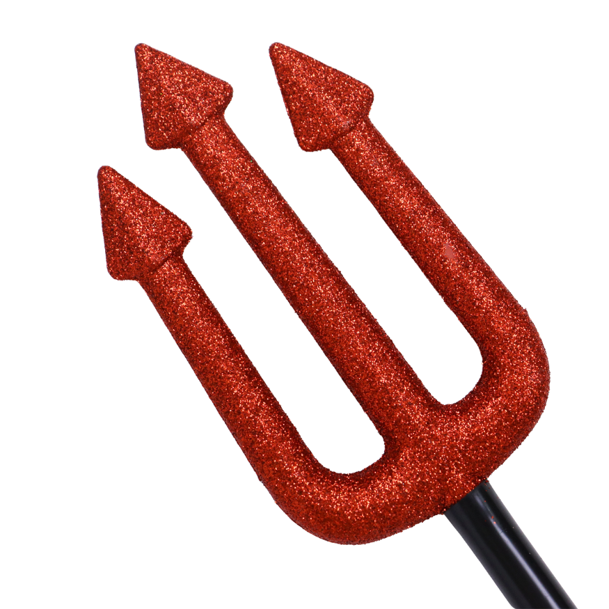 Een klassieke drietand die de look helemaal compleet maakt – met rode glitters voor een extra speels effect. Ideaal als finishing touch of accessoire tijdens een verkleedfeestje of fotoshoot.
