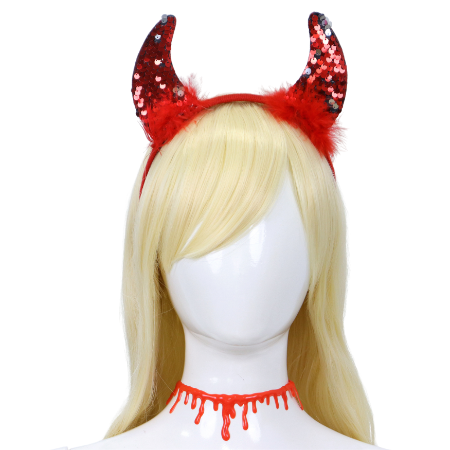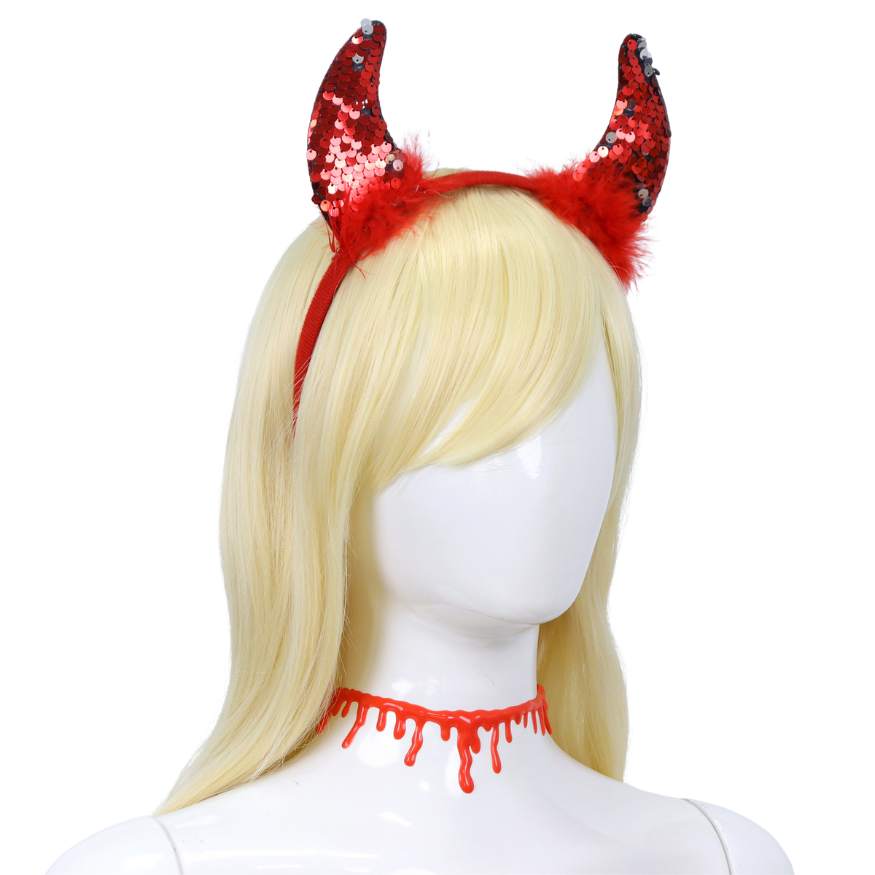 Een comfortabele haarband met iconische duivelhoorns afgewerkt in een opvallende rode glitter. Stevig, maar zacht om te dragen. -