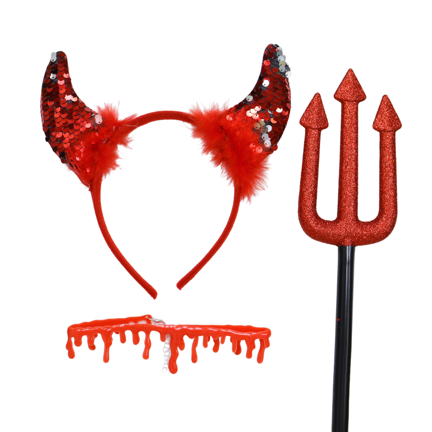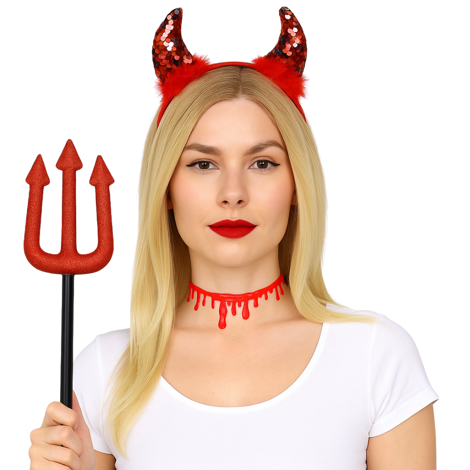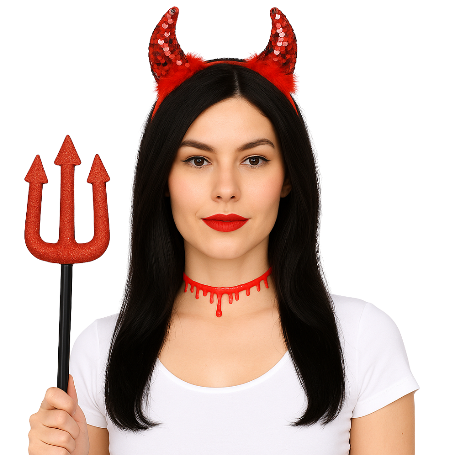 Transformeer jezelf in een duivelse verschijning in een handomdraai met deze complete 3-delige accessoiresset van Joya Kids®! Of je nu op zoek bent naar een opvallende look voor Halloween, carnaval of een verkleedfeestje – met deze set ben je meteen klaar om indruk te maken.