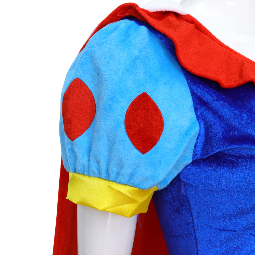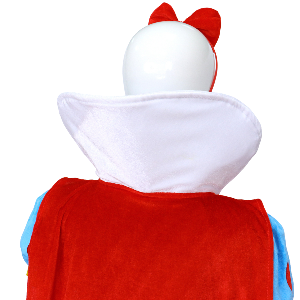 - Weelderige Rode Cape: De luxueuze rode cape met witte kraag voegt een dramatisch en koninklijk element toe aan de outfit. De witte kraag is verstevigd met ijzerdraad, waardoor deze omhoog blijft staan voor extra flair.