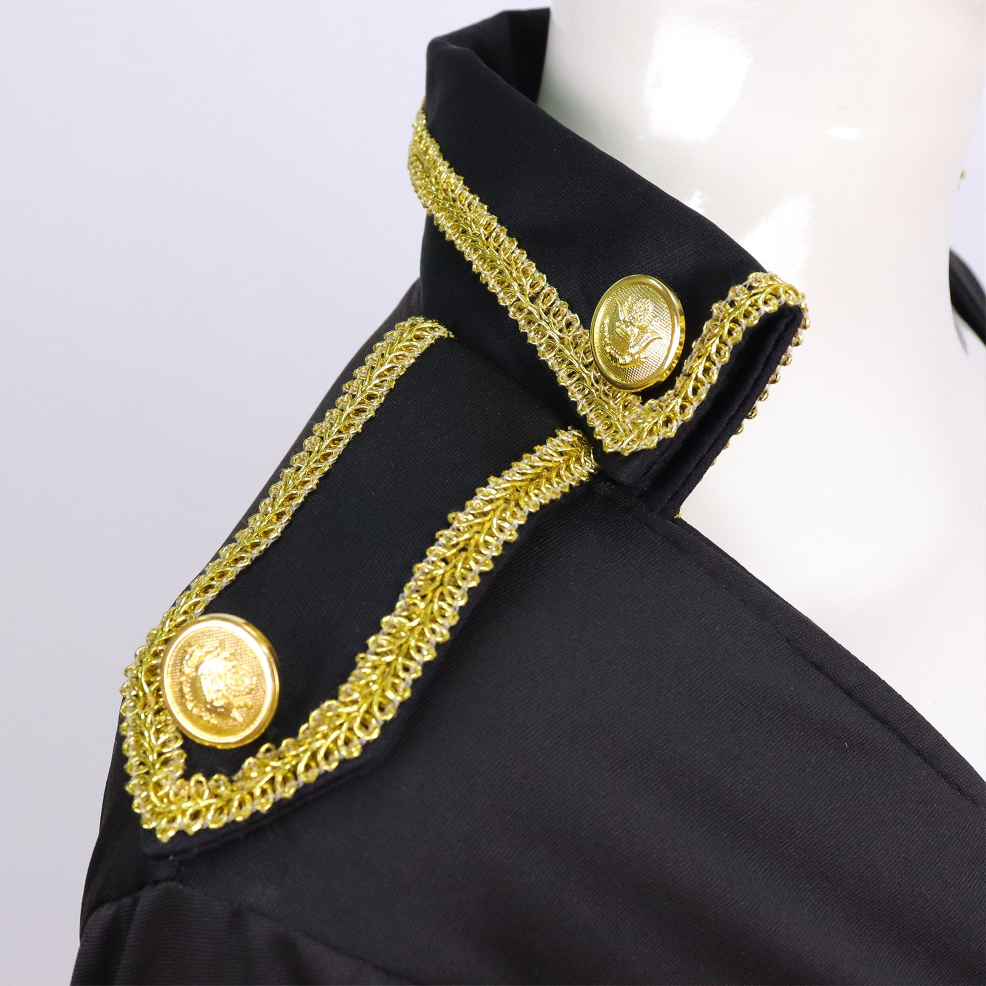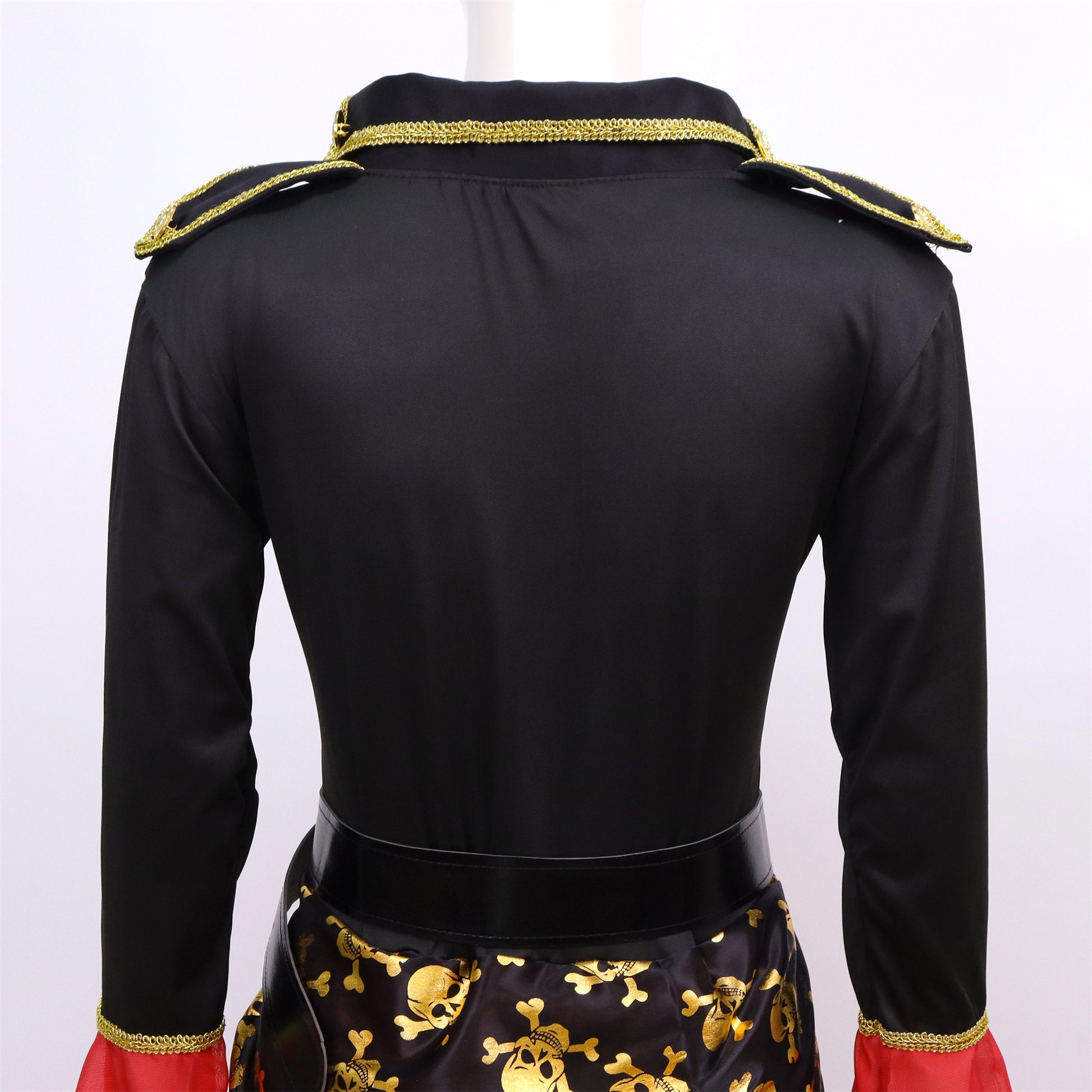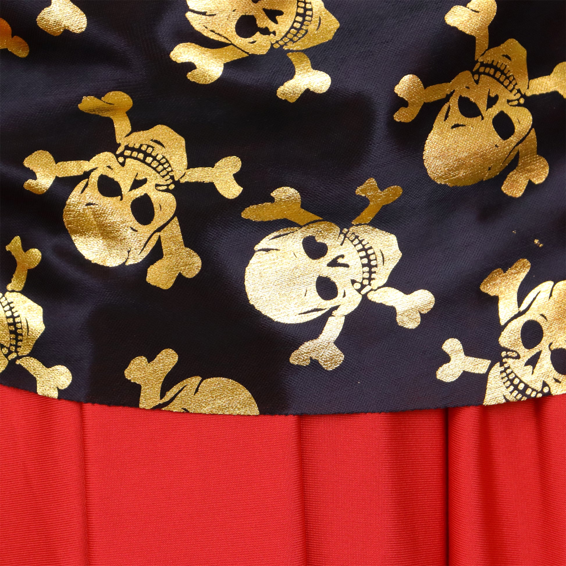 - Rok: Kort voor, lang achter met gouden doodshoofden