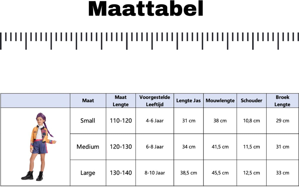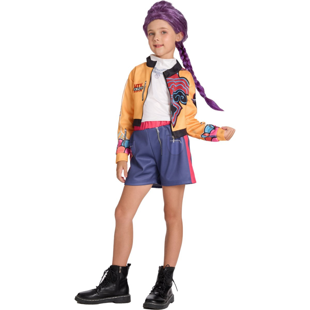 Stap in de wereld van Kpop en Demonenjagers met deze te gekke verkleedset van Rumi van Joya Kids®! Geïnspireerd op het populaire personage uit Demon Hunters, transformeert je kind in een stoere en stijlvolle heldin. Deze set is perfect voor kinderen die dol zijn op actie, muziek en mode – ideaal voor Carnaval, Halloween of een verkleedfeestje!