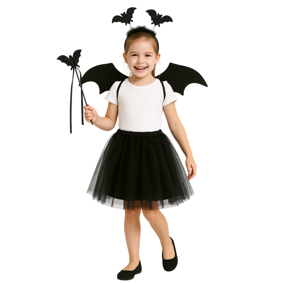 Met de Joyakids® Vleermuis Verkleedset is je kind helemaal klaar om magisch en mysterieus de nacht in te vliegen!