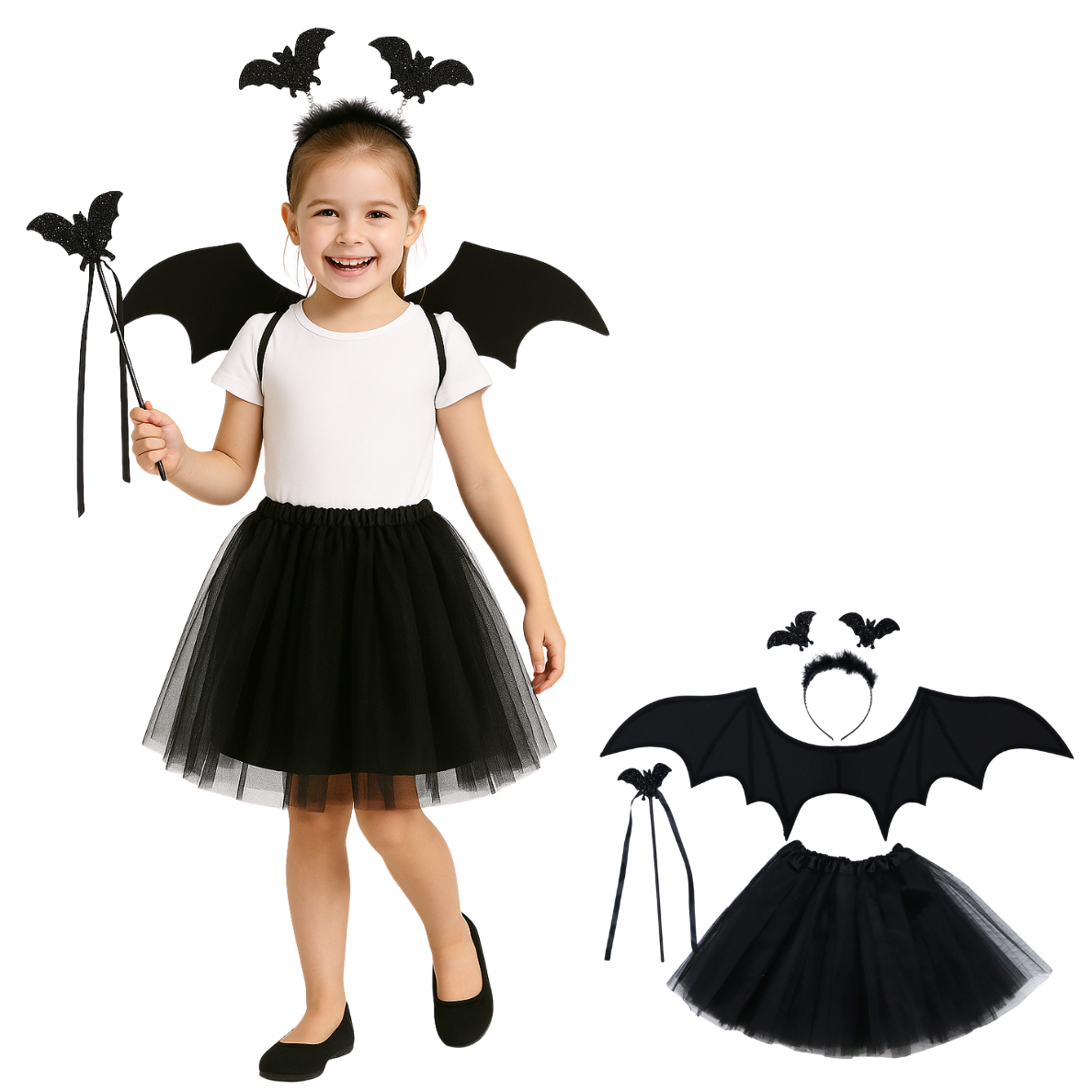 Laat je kind stralen tijdens Halloween of een verkleedfeest met deze prachtige 4-delige vleermuis verkleedset van Joyakids®! Deze schattige en tegelijkertijd mysterieuze set bestaat uit stijlvolle zwarte accessoires waarmee je kind moeiteloos verandert in een kleine vleermuis. Ideaal voor Halloween, schoolfeestjes of verkleedpartijtjes thuis!