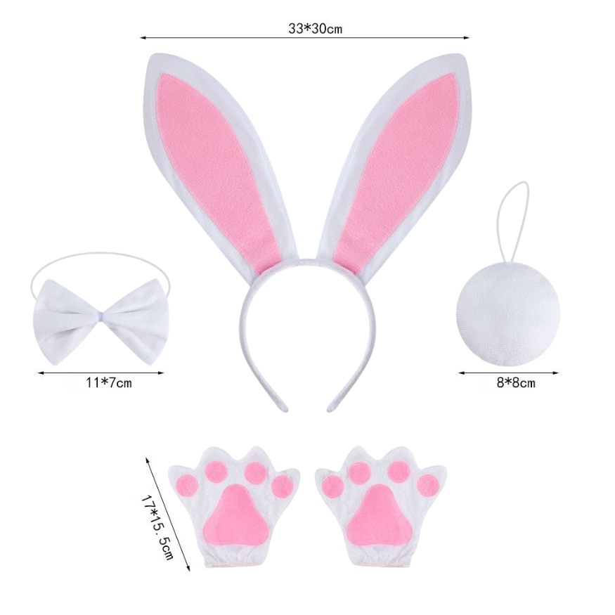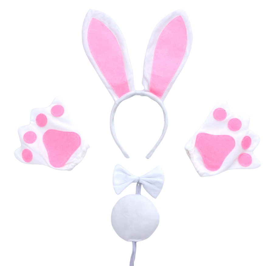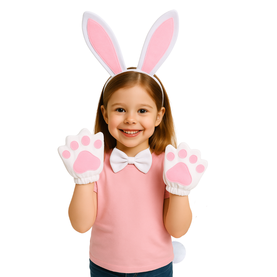 - Lieve konijnenpootjes: De set wordt compleet gemaakt met schattige, zachte konijnenpootjes met roze details, waardoor je kind eruitziet als het meest knuffelbare konijn op het feestje.