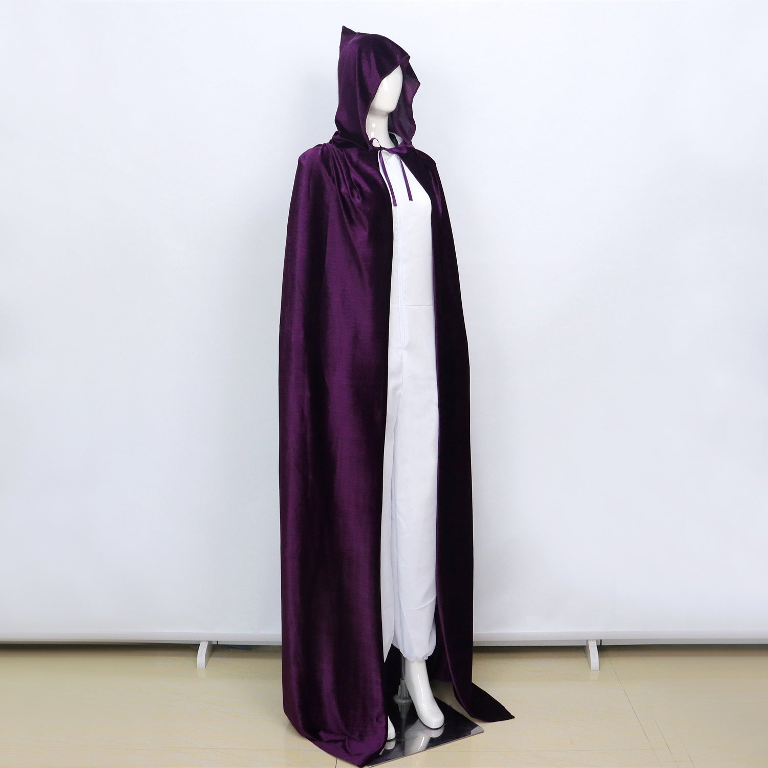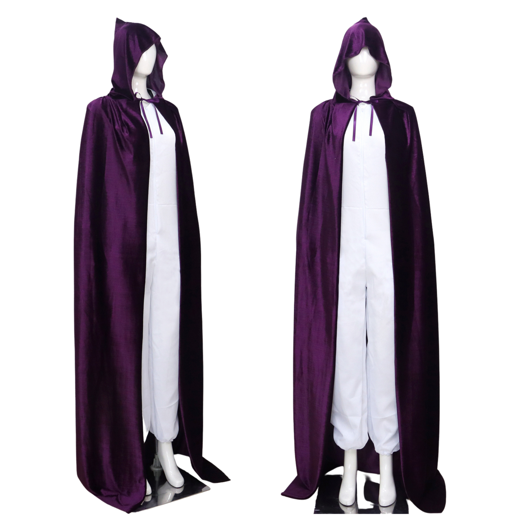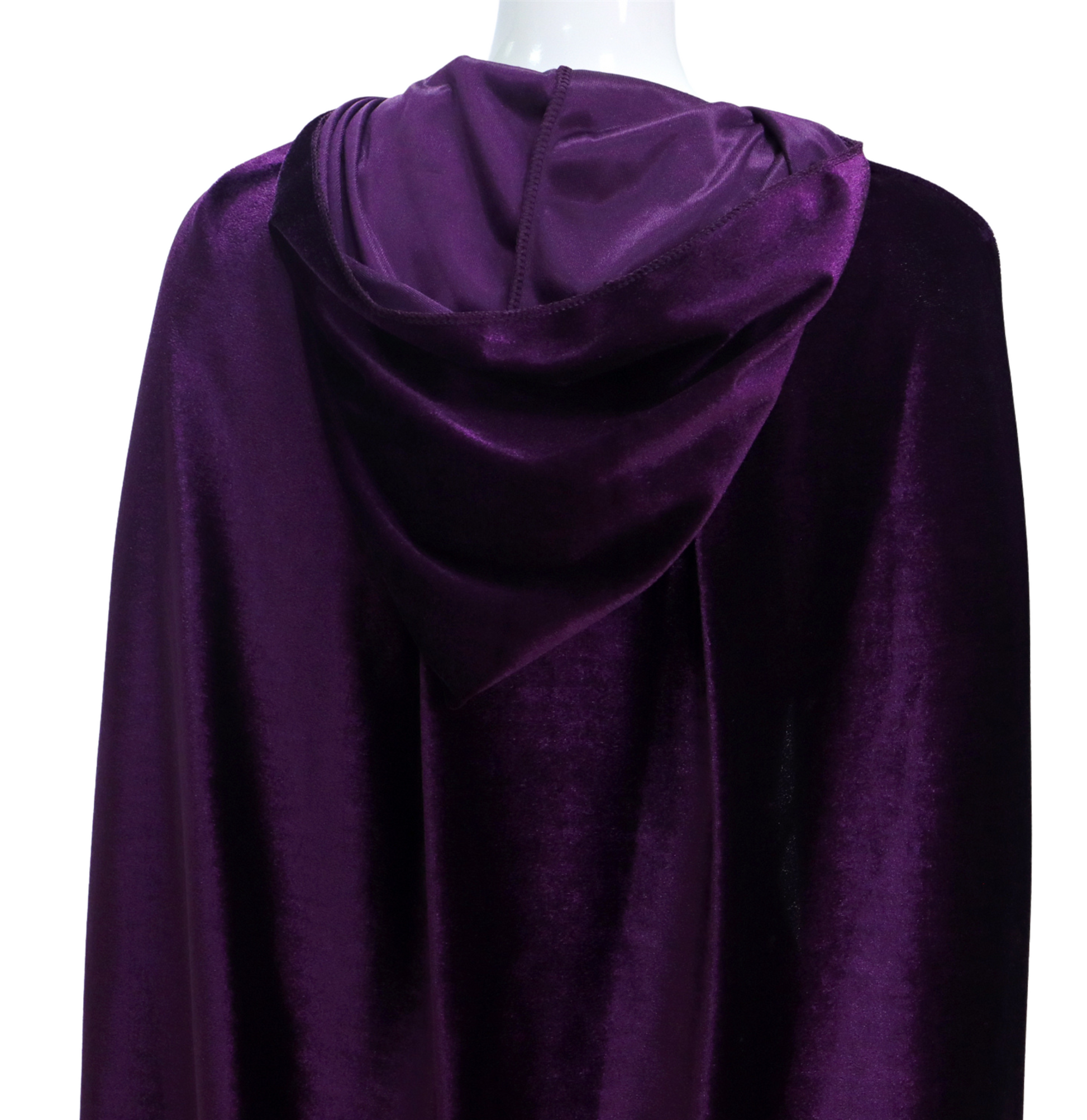 Met zijn klassiek donker paarse kleur en elegante snit is deze cape perfect te combineren met allerlei kostuums – van vampier tot tovenaar, heks of middeleeuwse krijger. De grote capuchon zorgt voor een dramatisch effect en maakt het geheel mysterieus en indrukwekkend.