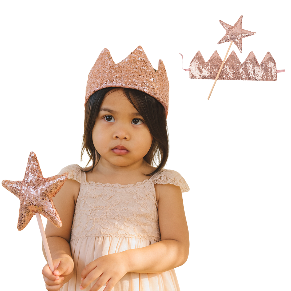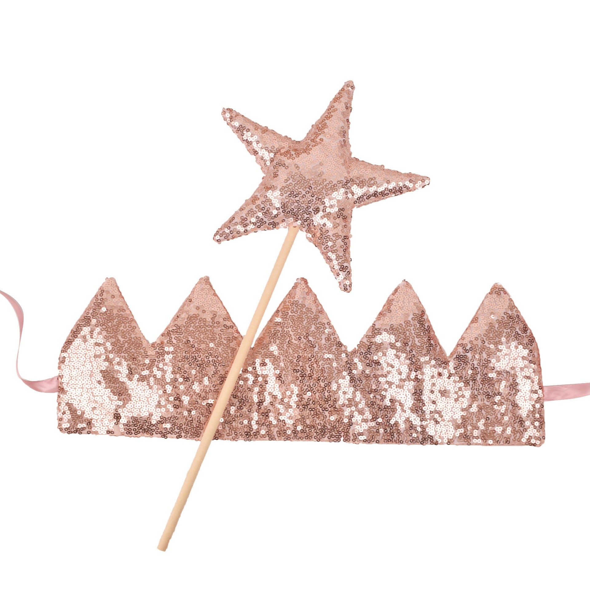 Luxe Verkleed Glitter Kroon en Staf Accessoires Rose Goud
