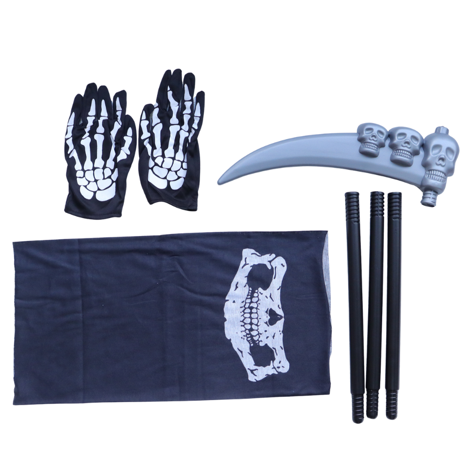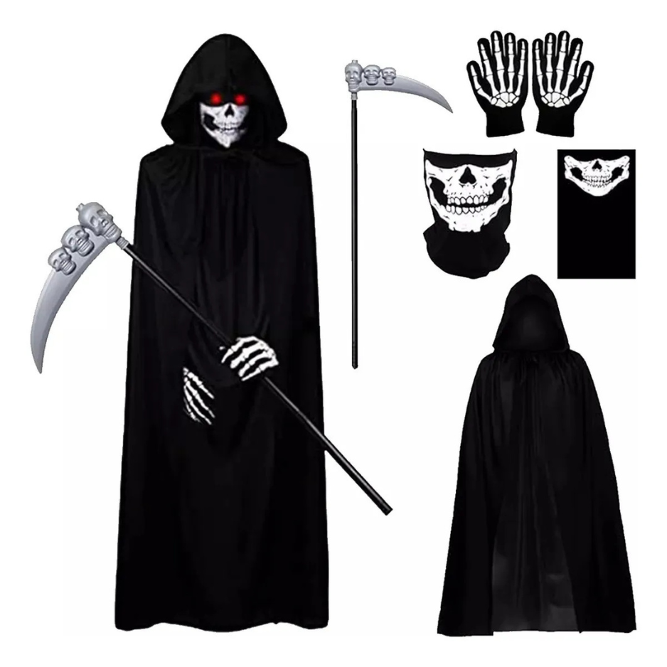 Transformeer jezelf moeiteloos in de angstaanjagende Magere Hein met deze complete verkleedset van Joya Kids®. Deze 4-delige outfit is speciaal ontworpen voor volwassenen en bevat álles wat je nodig hebt om Halloween, carnaval of een themafeest onvergetelijk te maken — zonder dat je nog losse accessoires hoeft aan te schaffen.