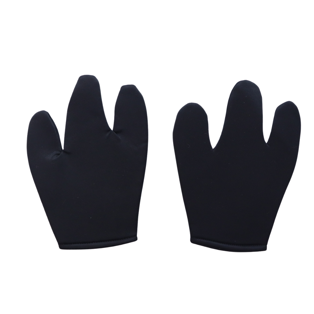 - Twee grote zwarte handschoenen om de look compleet te maken.