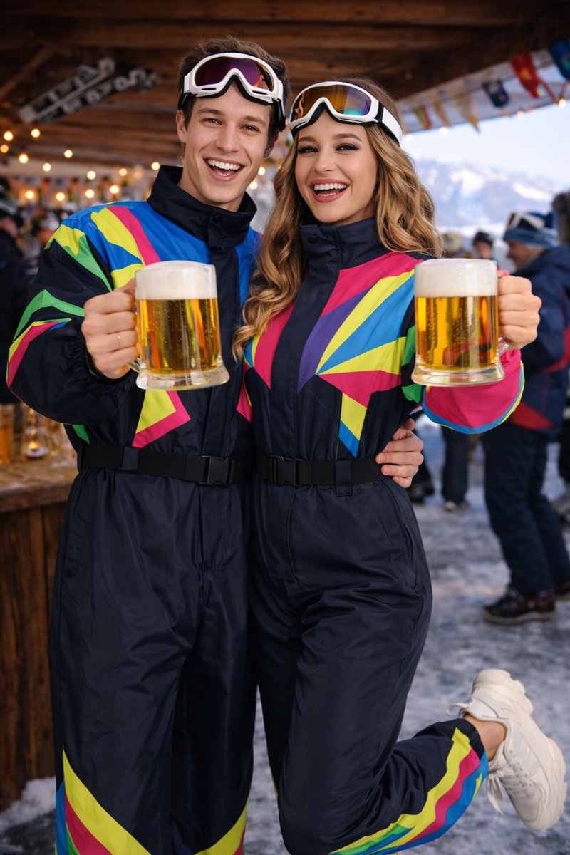 Ga volledig in stijl de piste op tijdens Carnaval met dit retro skipak voor volwassenen van Joya Party®. Dit opvallende vintage ski pak brengt je direct terug naar de jaren 80 en 90 en is dé perfecte keuze voor Carnaval, après-ski feesten of thema-avonden.