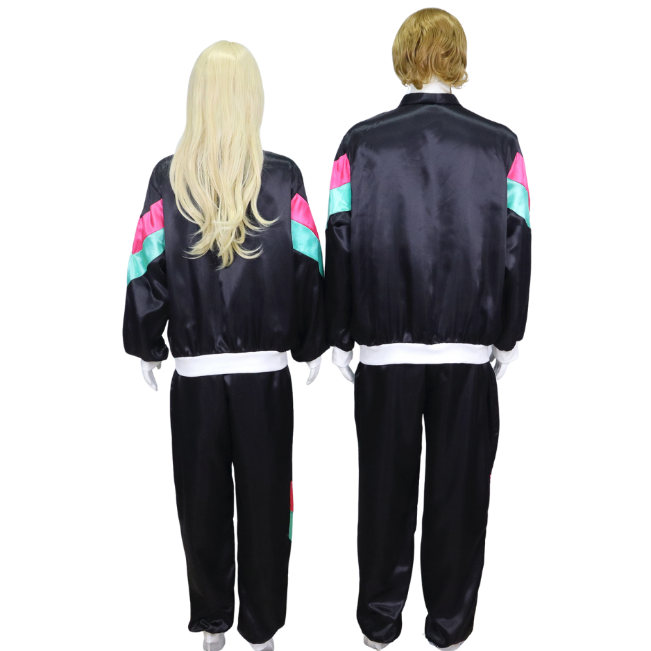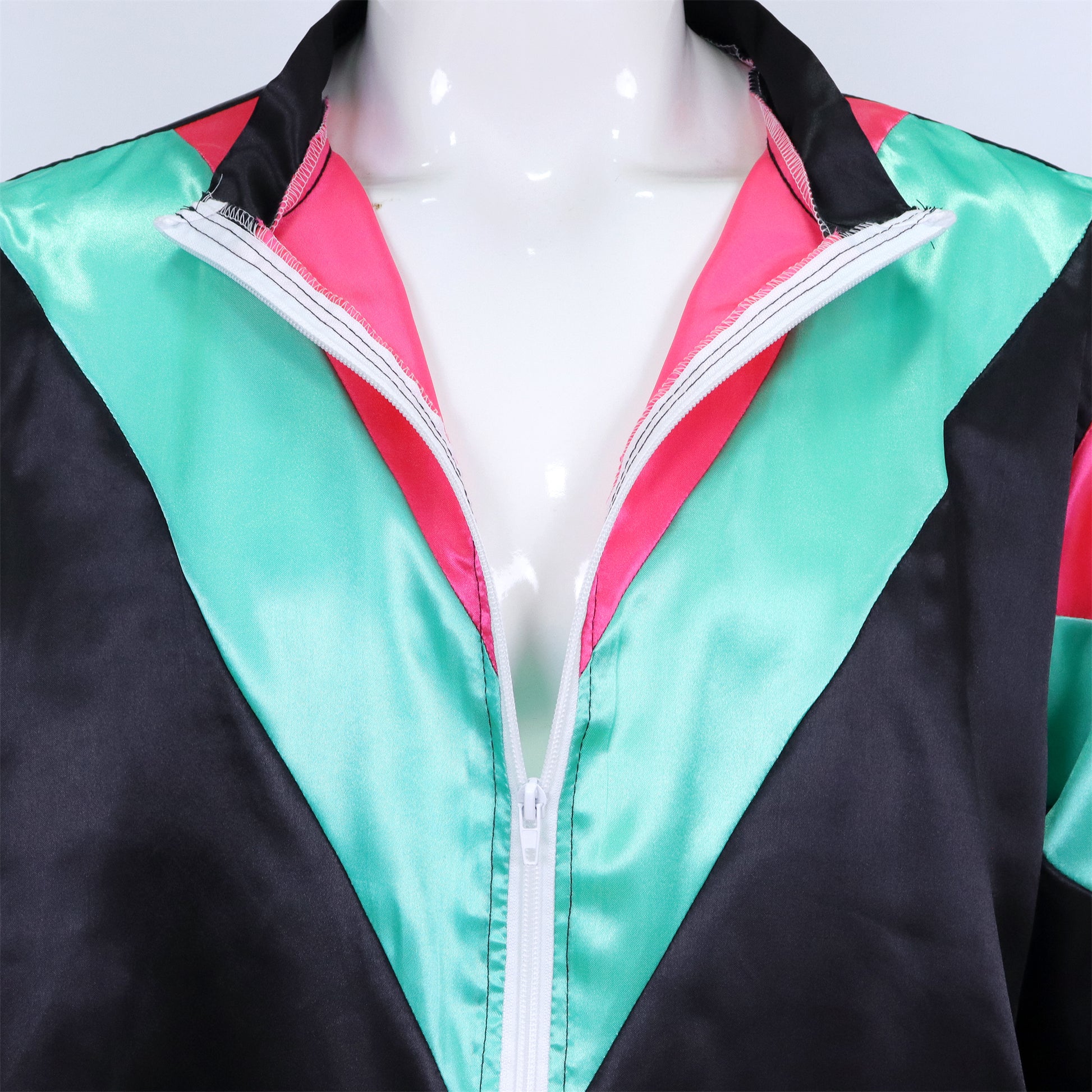 Ga all-in retro met dit opvallende Joya Party® retro trainingspak voor volwassenen in een krachtige zwart met neon roze en groen kleurcombinatie. Dit jaren 80 stijl trainingspak ademt pure vintage vibes en is perfect voor carnaval, Halloween, themafeesten, foute party’s en verkleedfeestjes. De strakke diagonale kleurvlakken en glanzende look doen denken aan klassieke 80’s aerobics & oldschool trainingspakken.