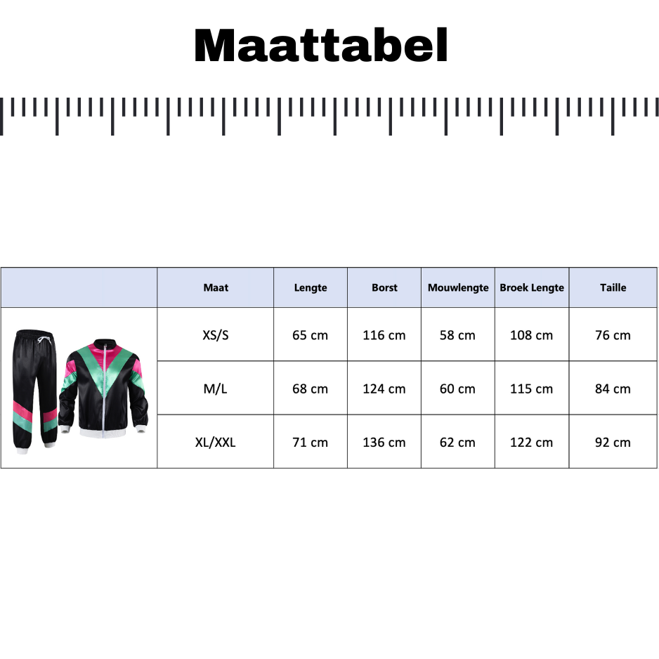 Durf op te vallen en steel de show met dit unieke Joya Party® retro trainingspak – comfort, stijl en fun in één outfit!