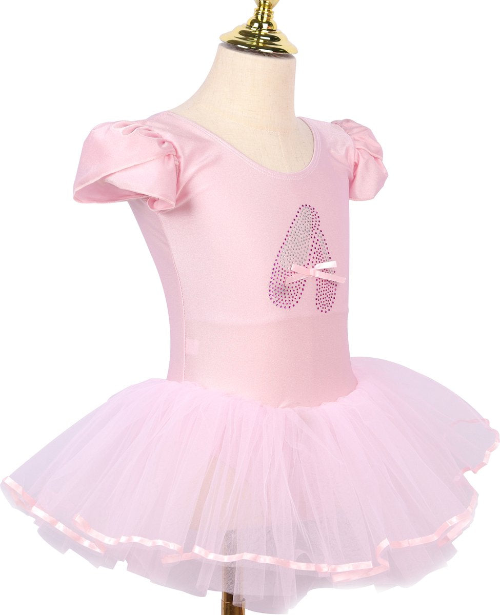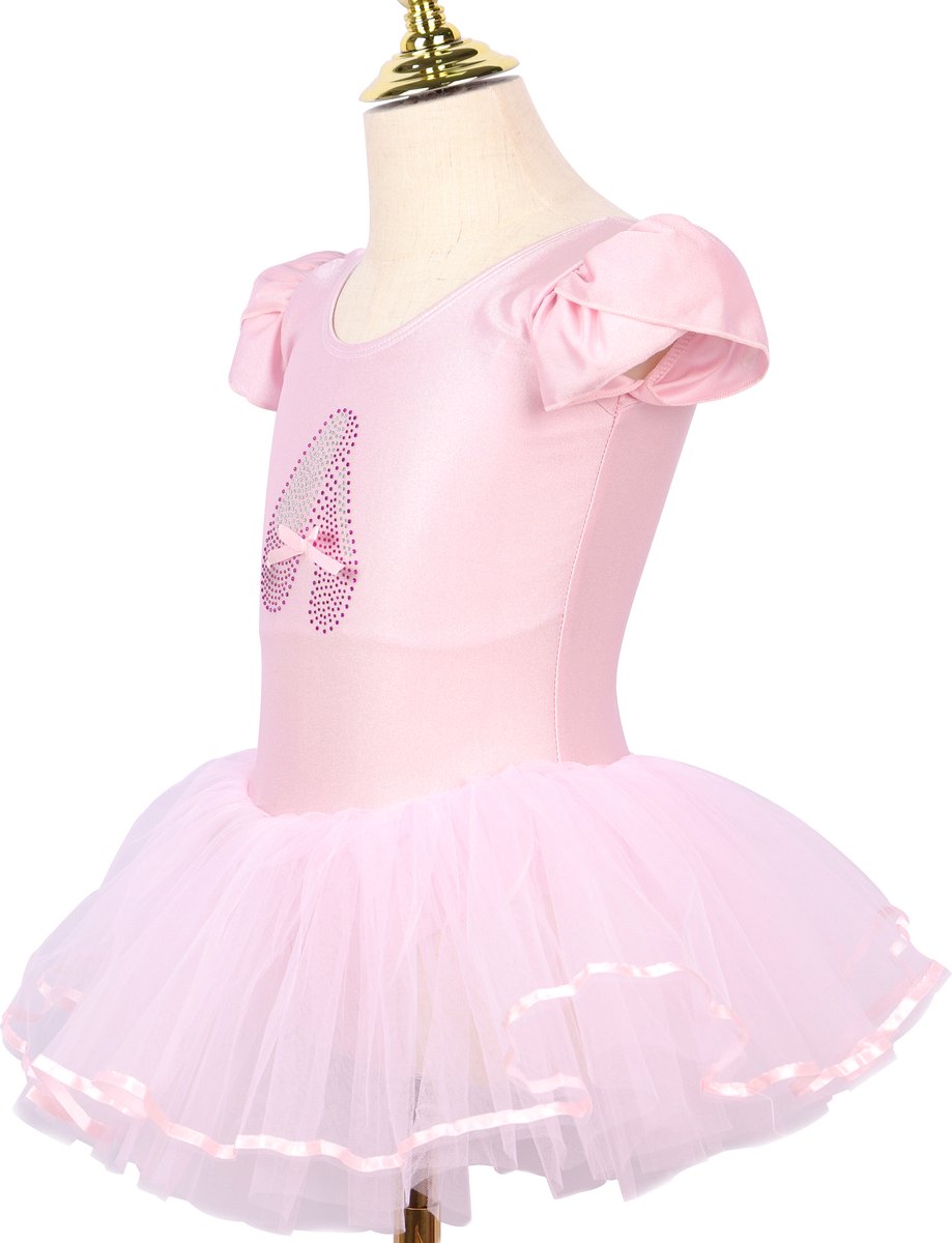 Roze balletpakje met tutu en glitterprint