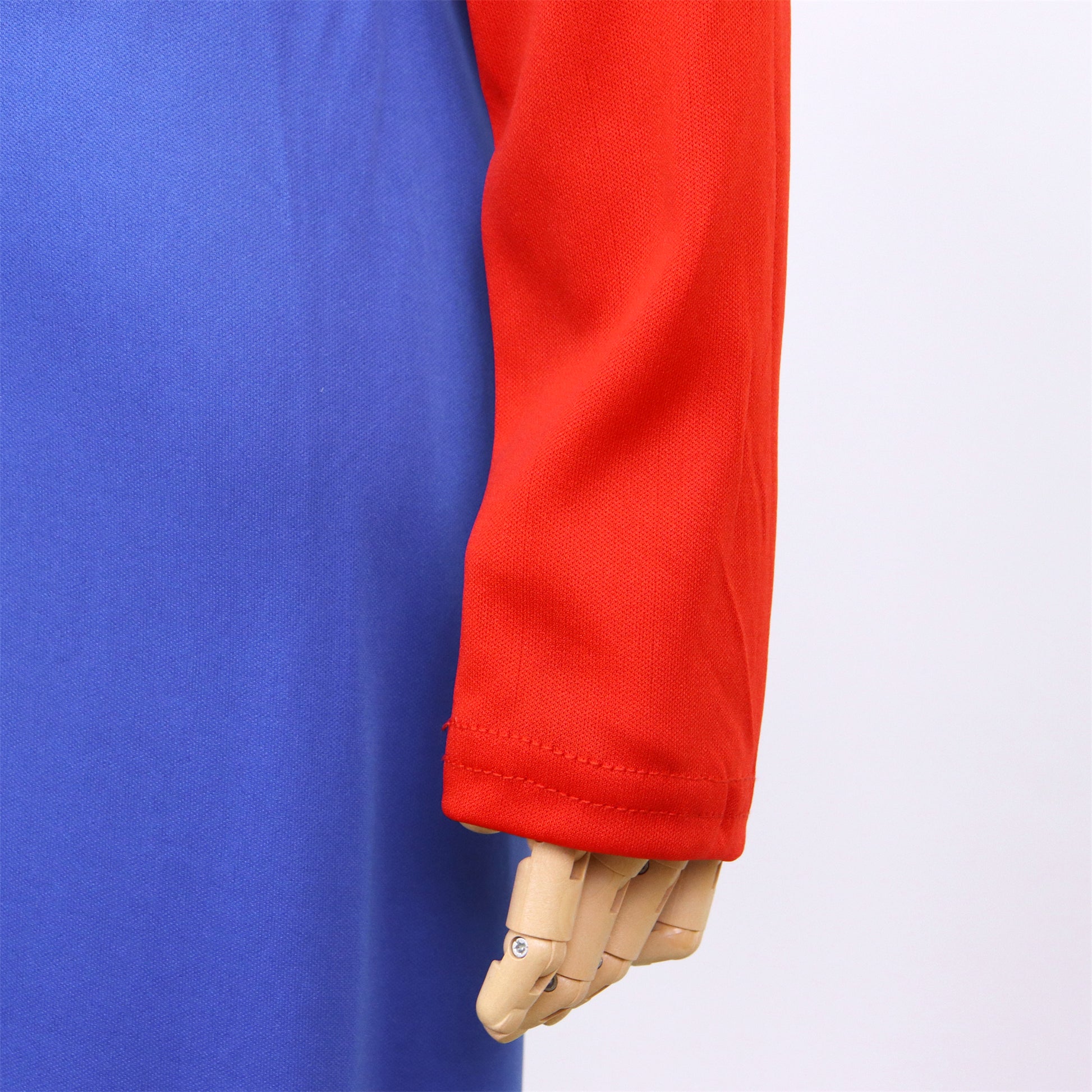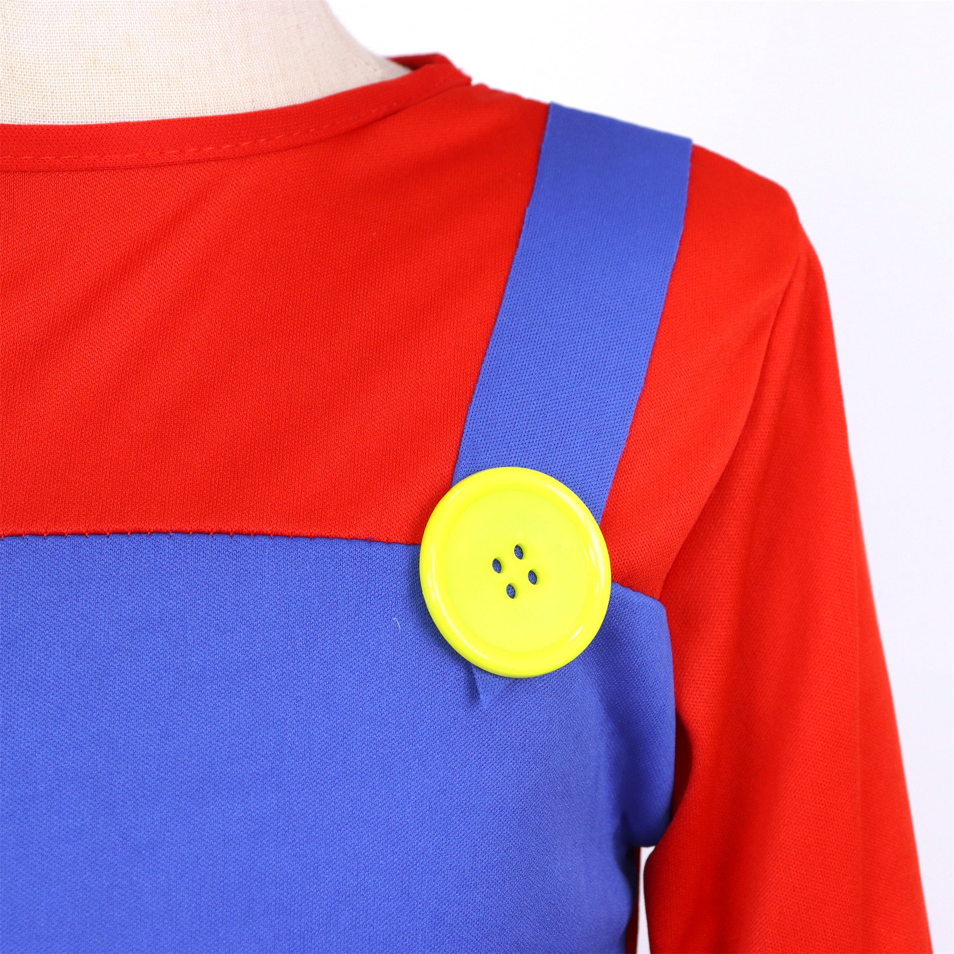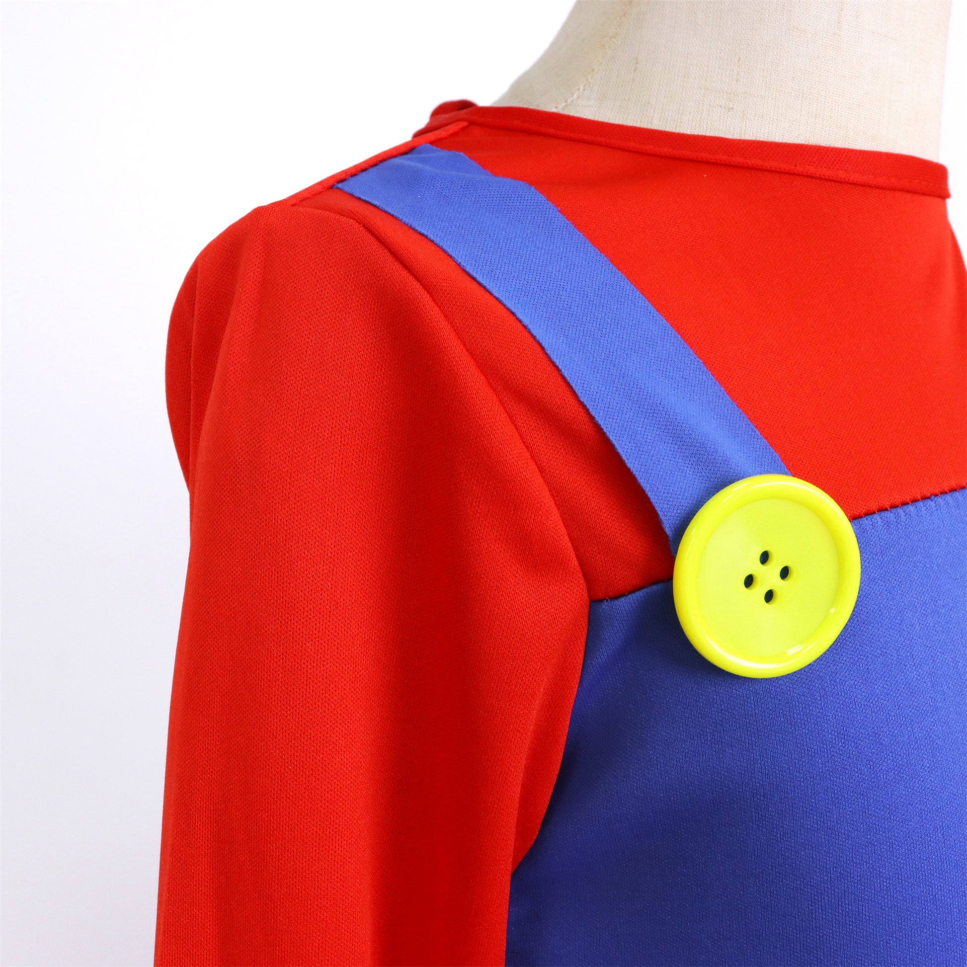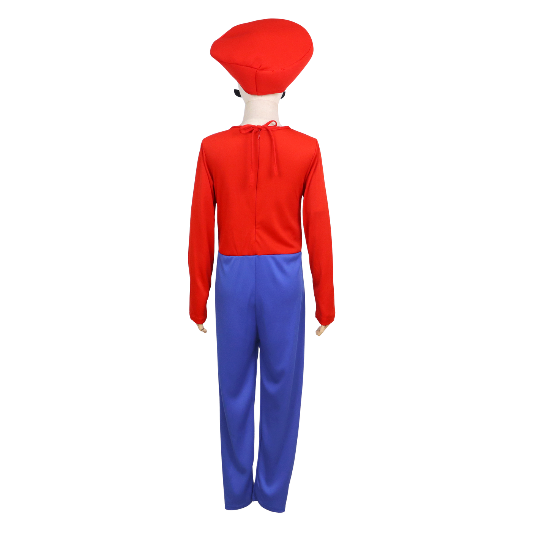 De outfit bestaat uit een comfortabele, rekbare jumpsuit die eruitziet alsof je kind een rode longsleeve draagt met daarover een klassieke blauwe tuinbroek – precies zoals Mario eruitziet in de bekende spellen. Dankzij het stretchmateriaal biedt het volop bewegingsvrijheid, perfect om in te spelen en te rennen.