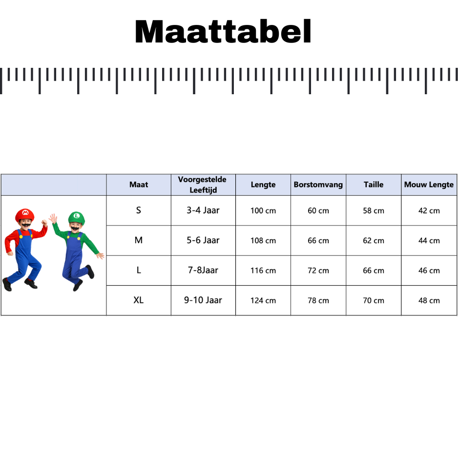 Tip: Combineer met het Luigi kostuum van Joya Kids® voor een perfect duo-outfit met broertjes, zusjes of vriendjes! Of met onze volwassen versie van dit verkleedpak om samen met je kind verkleed te gaan.