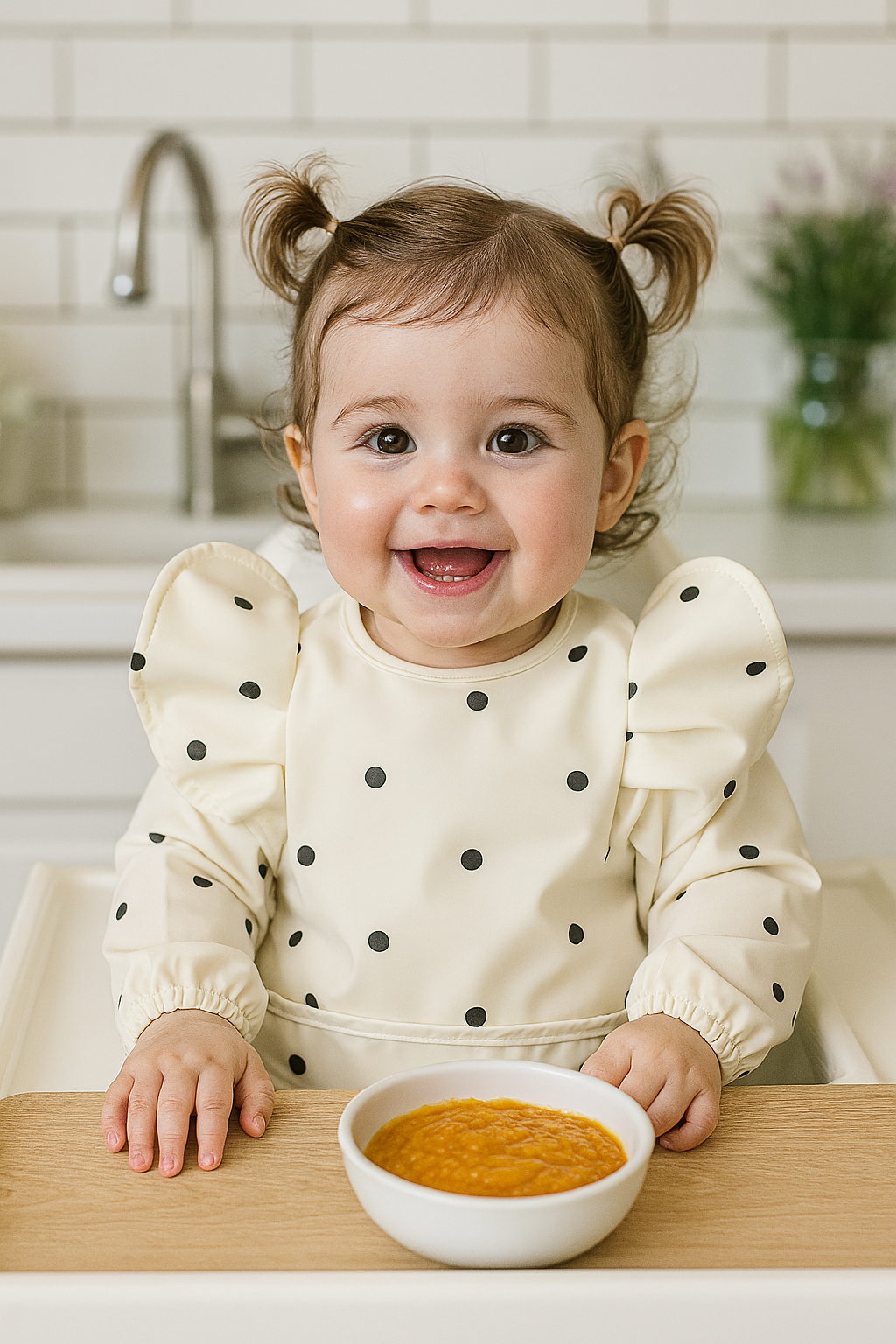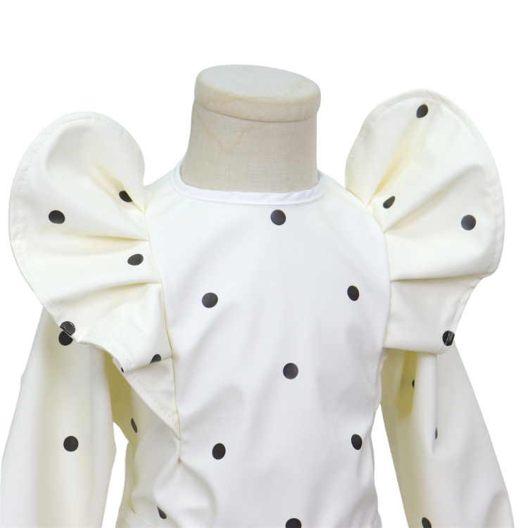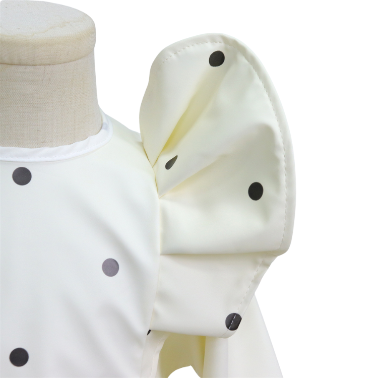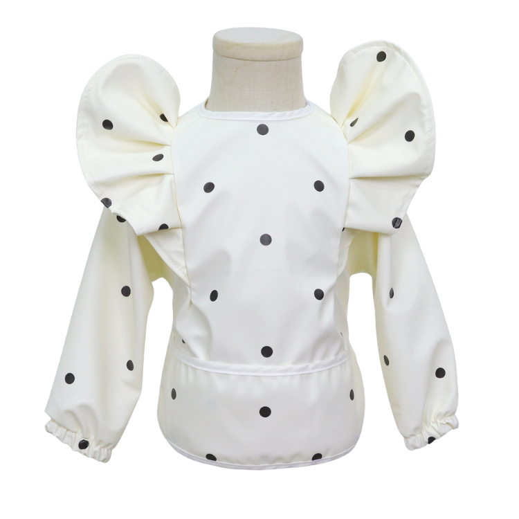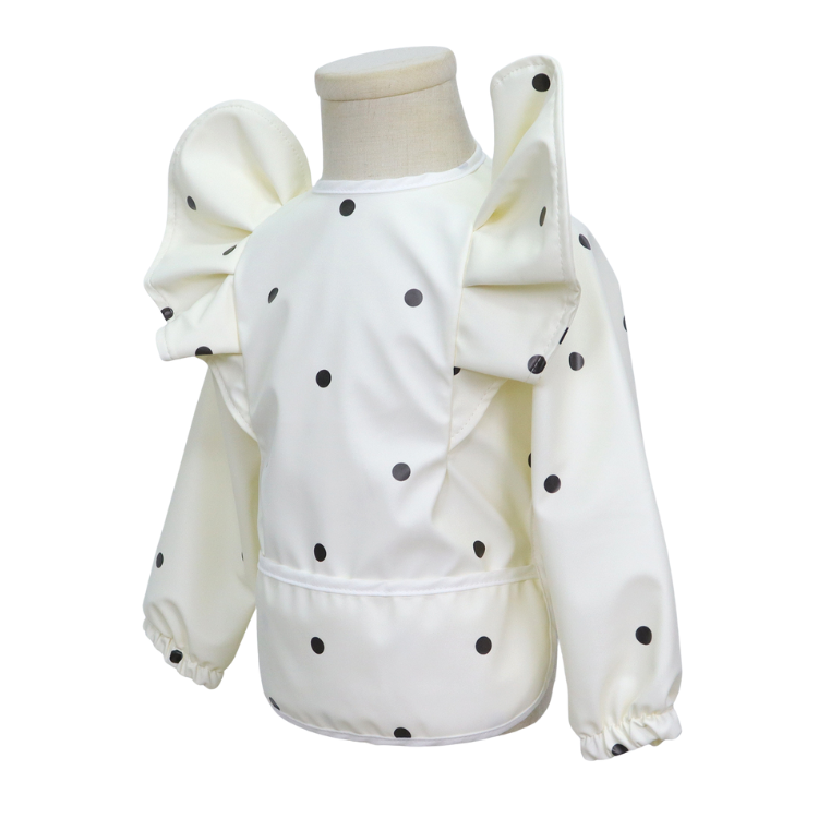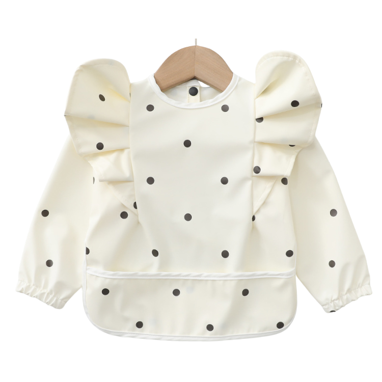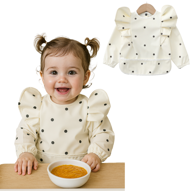 Laat je kleintje vrij ontdekken, eten en spelen zonder zorgen over vlekken of vieze kleding! Deze stijlvolle slabber met lange mouwen en opvallende pofmouwen is niet alleen een feest om te zien, maar ook een echte must-have voor elke ouder.