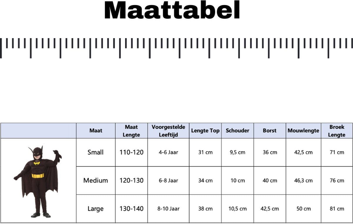 - De cape met vast masker is het echte pronkstuk: de cape valt prachtig over de schouders, terwijl het masker met uitgesneden ooggaten én iconische oren het gezicht mysterieus bedekt.