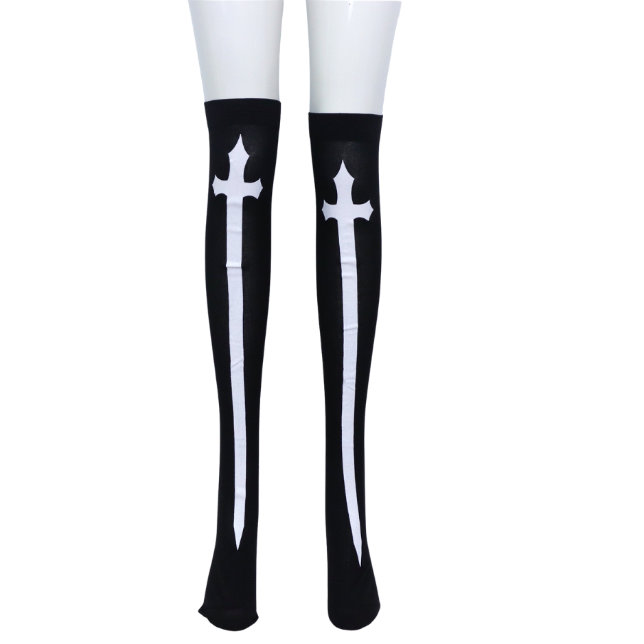 Zwarte knielange sokken met witte kruizen:
