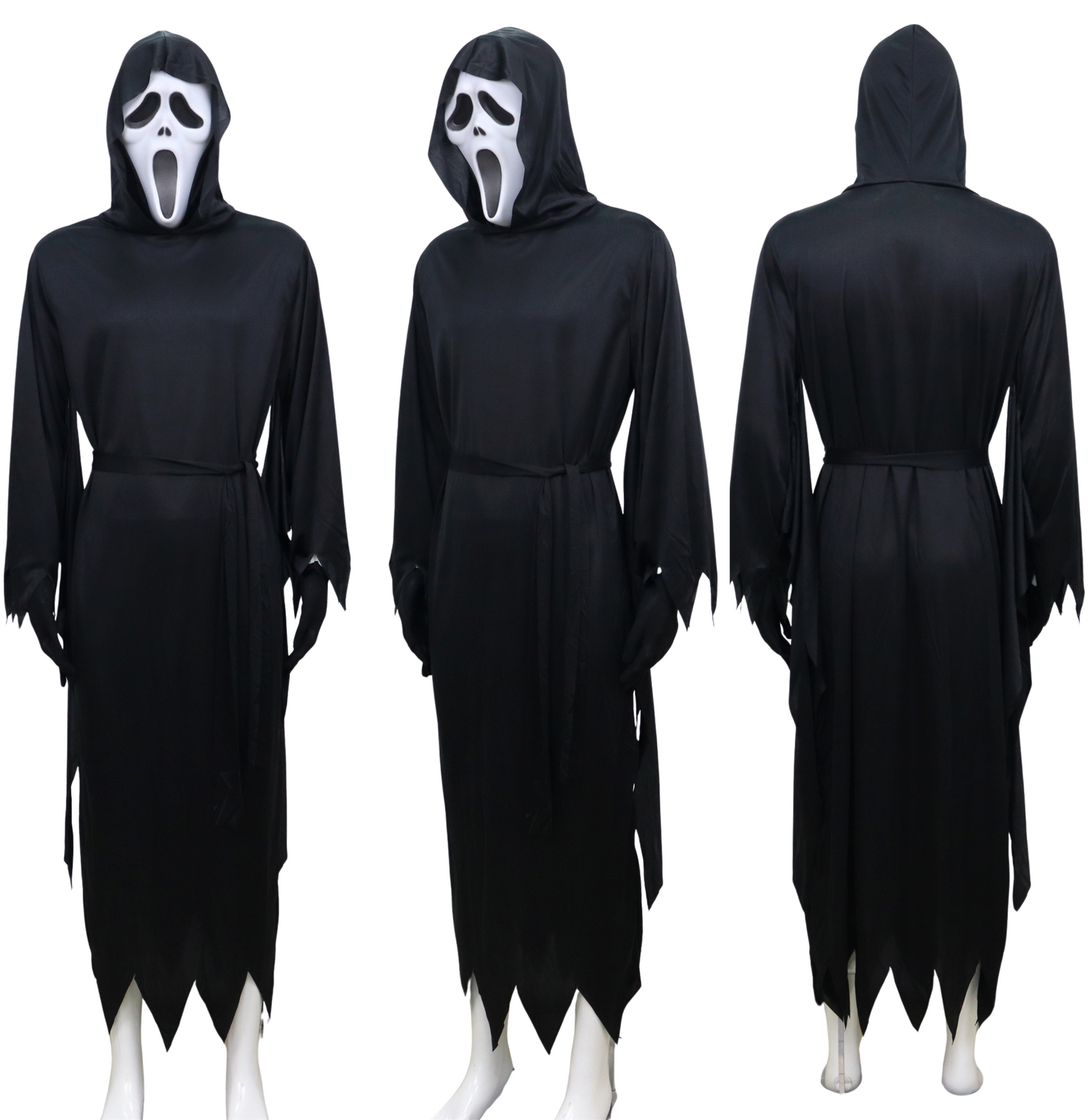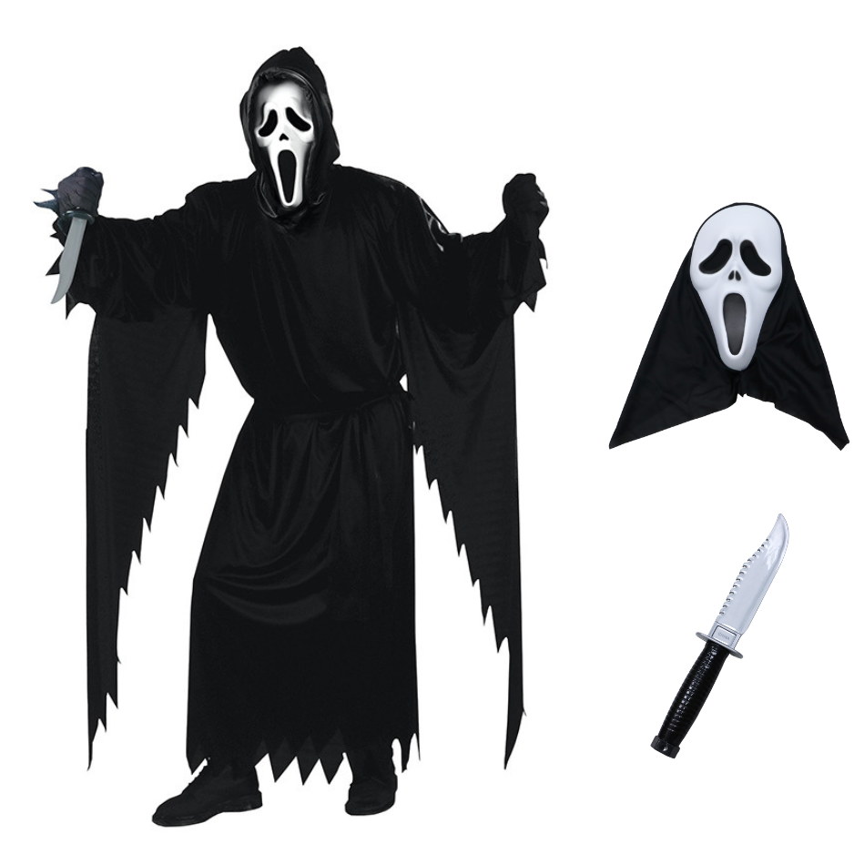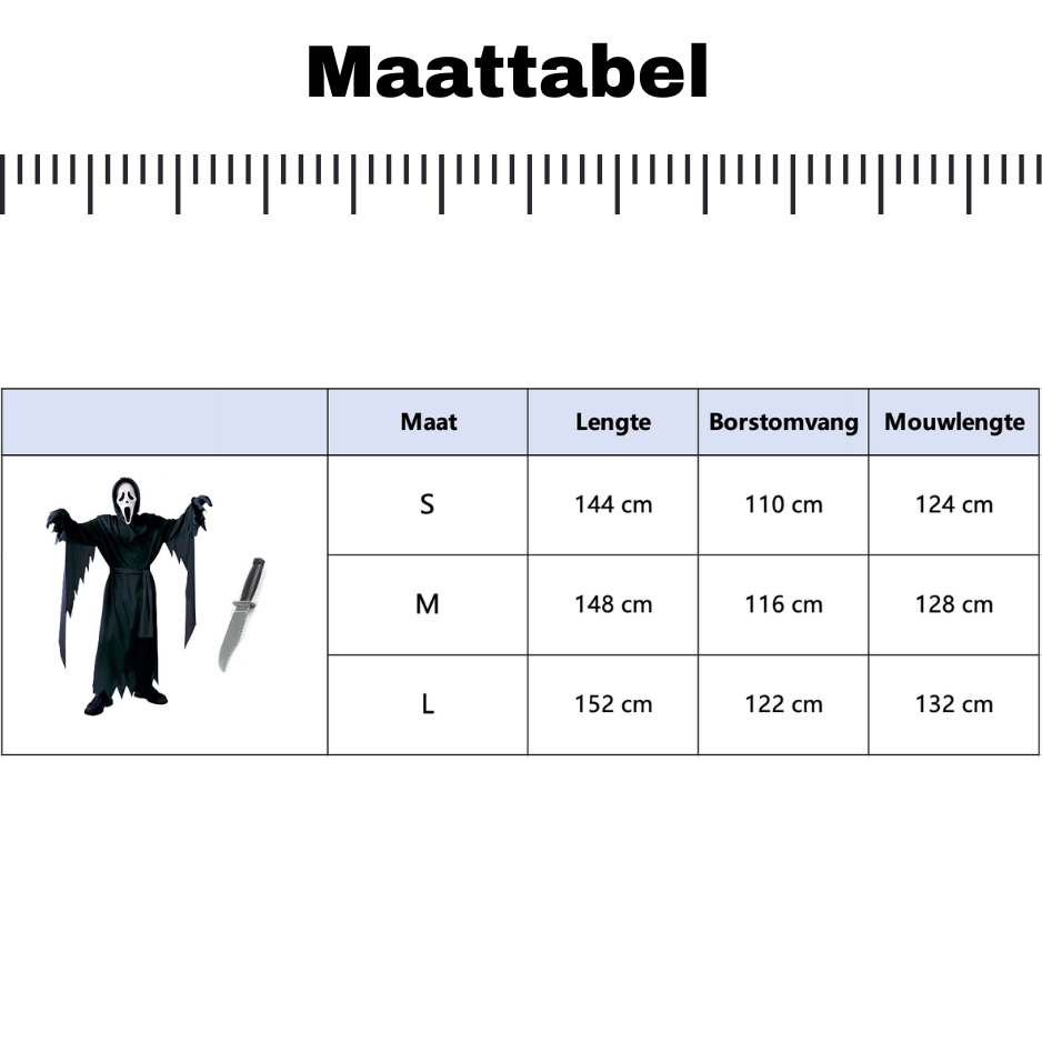 Laat iedereen schrikken tijdens Halloween of carnaval met dit iconische Scream-verkleedkostuum van Joya Kids®! Deze complete set is alles wat je nodig hebt om direct als de beruchte horrorfiguur op het feest te verschijnen.