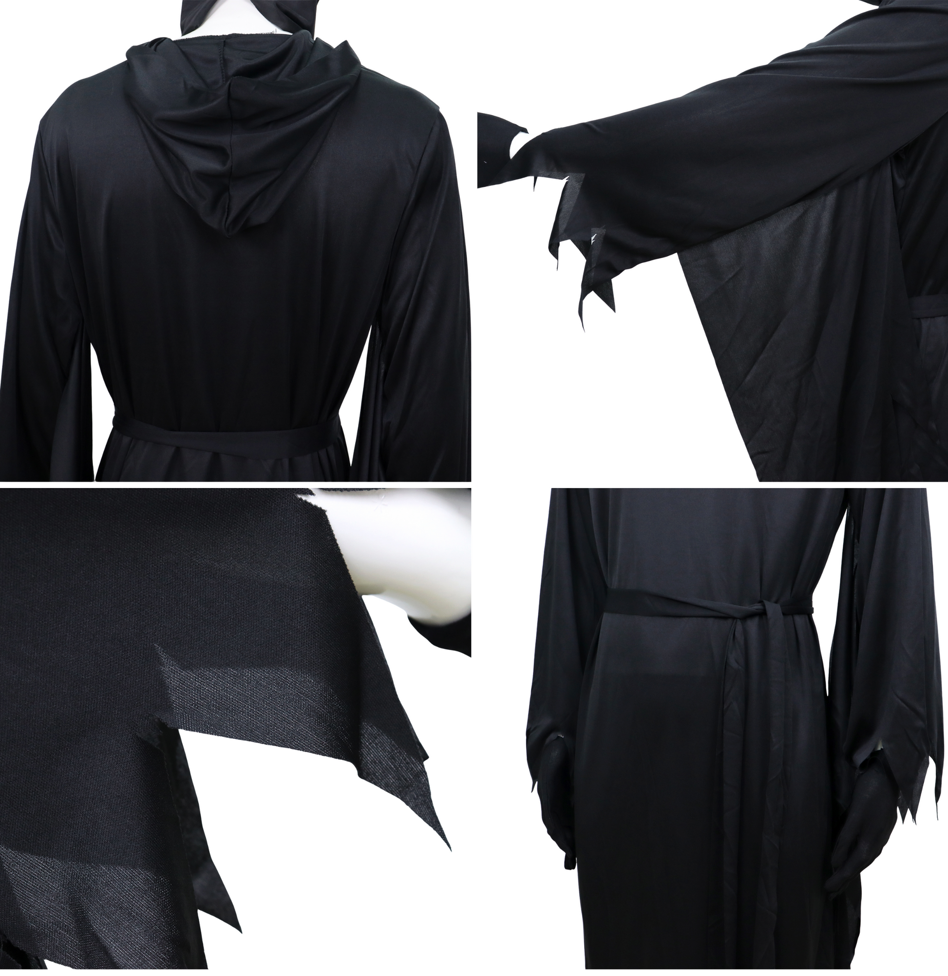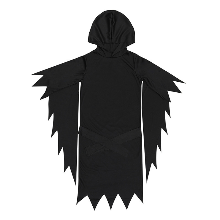 - Zwart gewaad met capuchon en opvallende vleermuismouwen