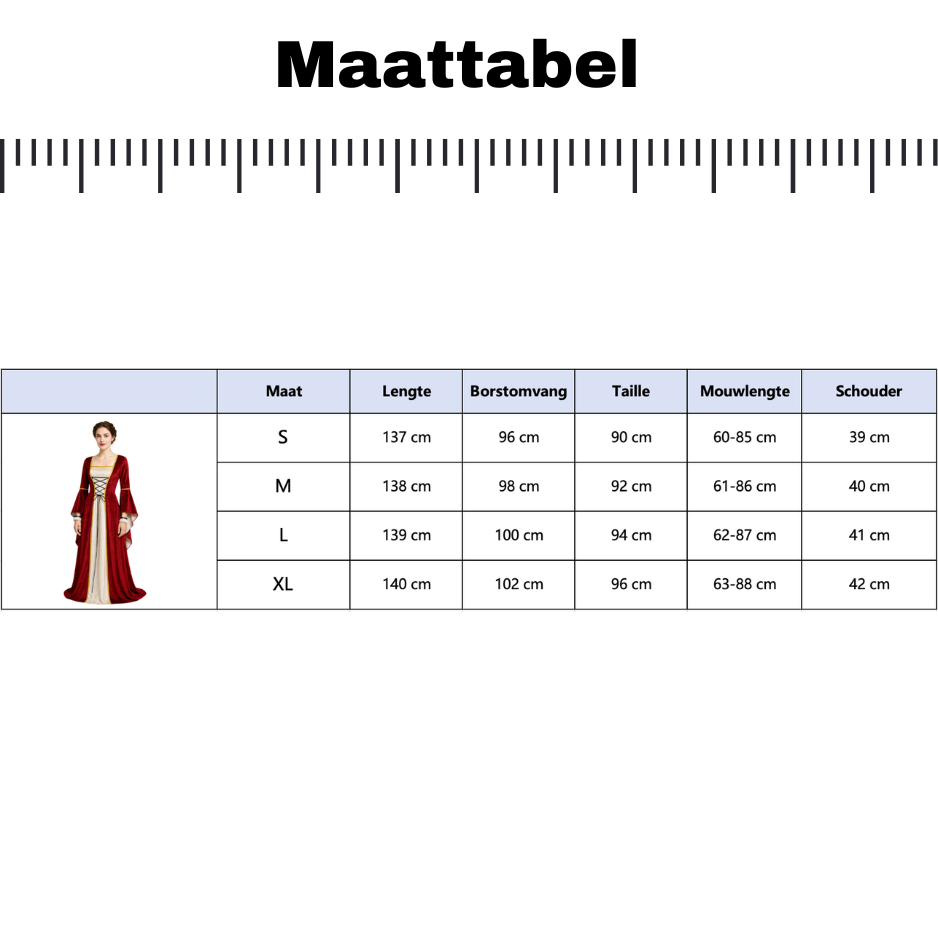 Voel je een echte edelvrouw uit vervlogen tijden met deze luxe middeleeuwse jonkvrouw verkleedjurk voor volwassenen van Joya Kids®. Deze prachtige verkleedjurk is perfect voor themafeesten, fantasy events, cosplay, carnaval of Halloween. Een opvallende en elegante jurk waarmee je direct in stijl verkleed bent.