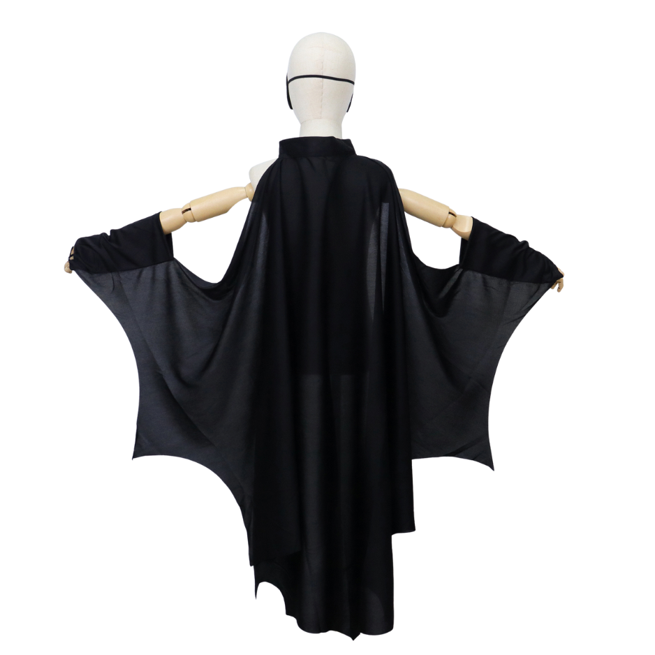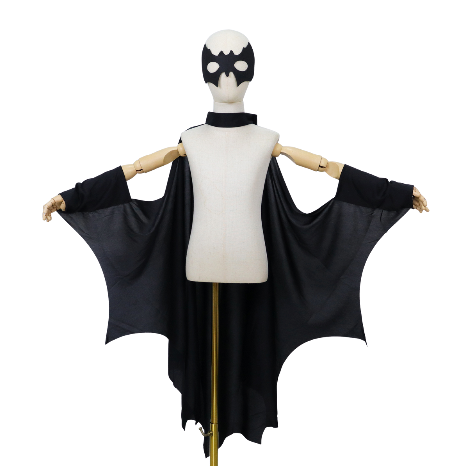 Transformeer je kind in een stoere vleermuis met deze complete verkleedset van Joya Kids®! Deze set bestaat uit een prachtige zwarte cape met uitgesneden vleermuisvorm én een bijpassend masker. De cape heeft handige mouwen aan de uiteindes waardoor deze goed blijft zitten, en het elastiek bij de vingertoppen zorgt voor een indrukwekkend vleermuiseffect bij het bewegen.