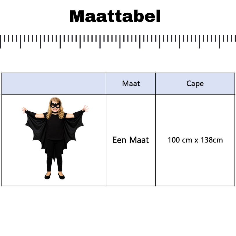 - Afmetingen cape: 100 x 138 cm