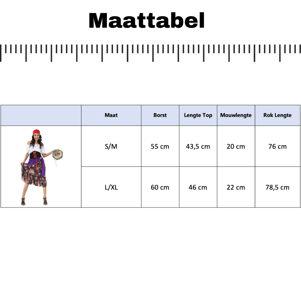 Met deze Joya Party® zigeuner verkleedset trek je gegarandeerd de aandacht en ben je helemaal klaar voor een sfeervol en kleurrijk feest
