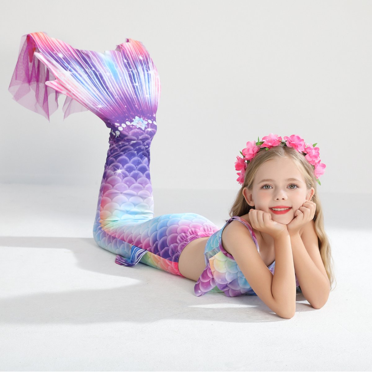 Zeemeerminstaart met bikini verkleed set Blauw, Paars en Roze met MONOVIN
