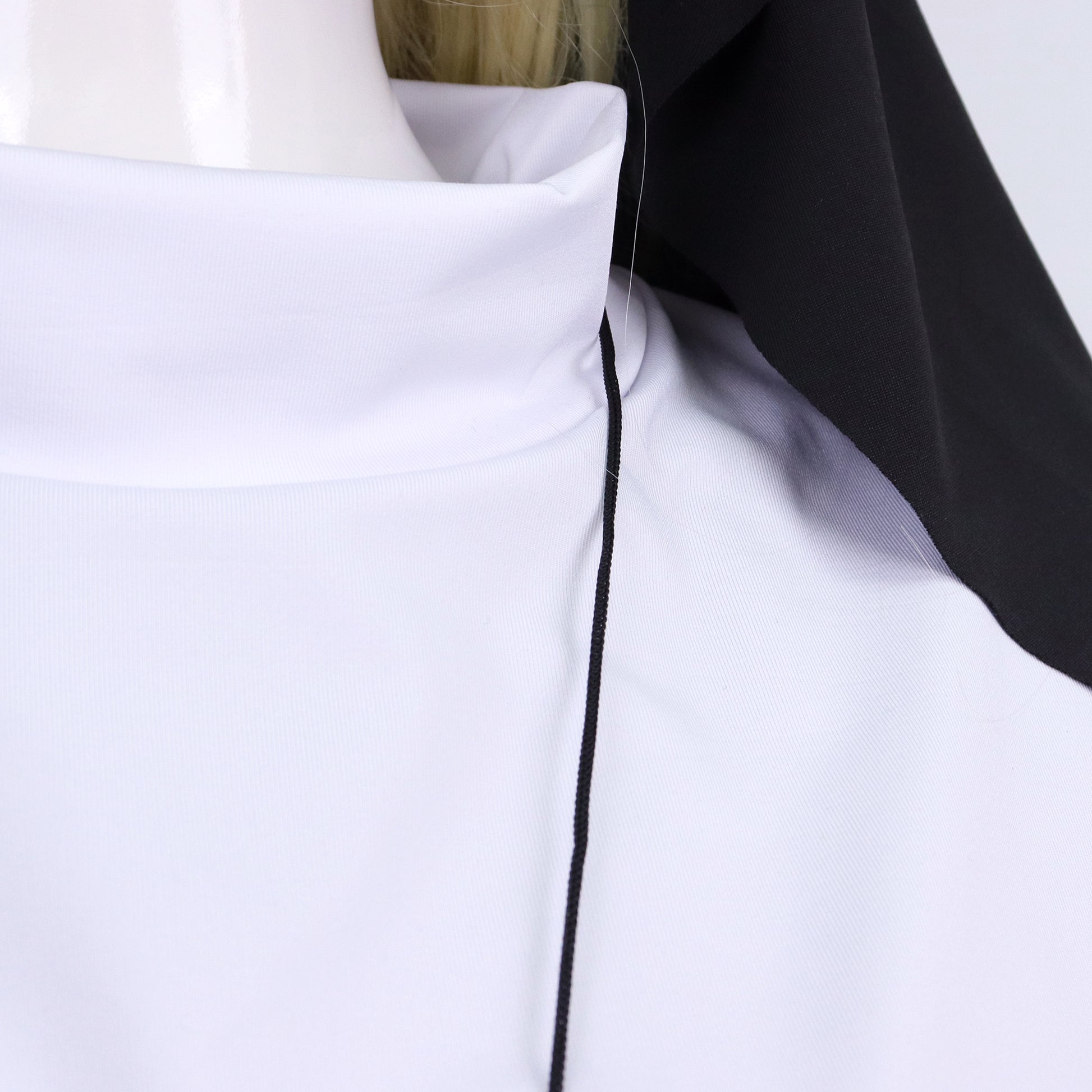 - Een luxe witte kraag met opstaande hals, typisch voor de nonnenstijl
