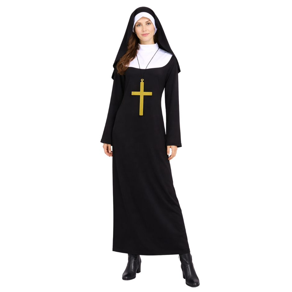 Ga stijlvol en volledig verkleed naar elk feest met dit luxe non kostuum voor dames van Joya Party®. Met deze complete verkleedoutfit als non ben je direct herkenbaar en perfect gekleed voor Carnaval, Halloween of een themafeest .