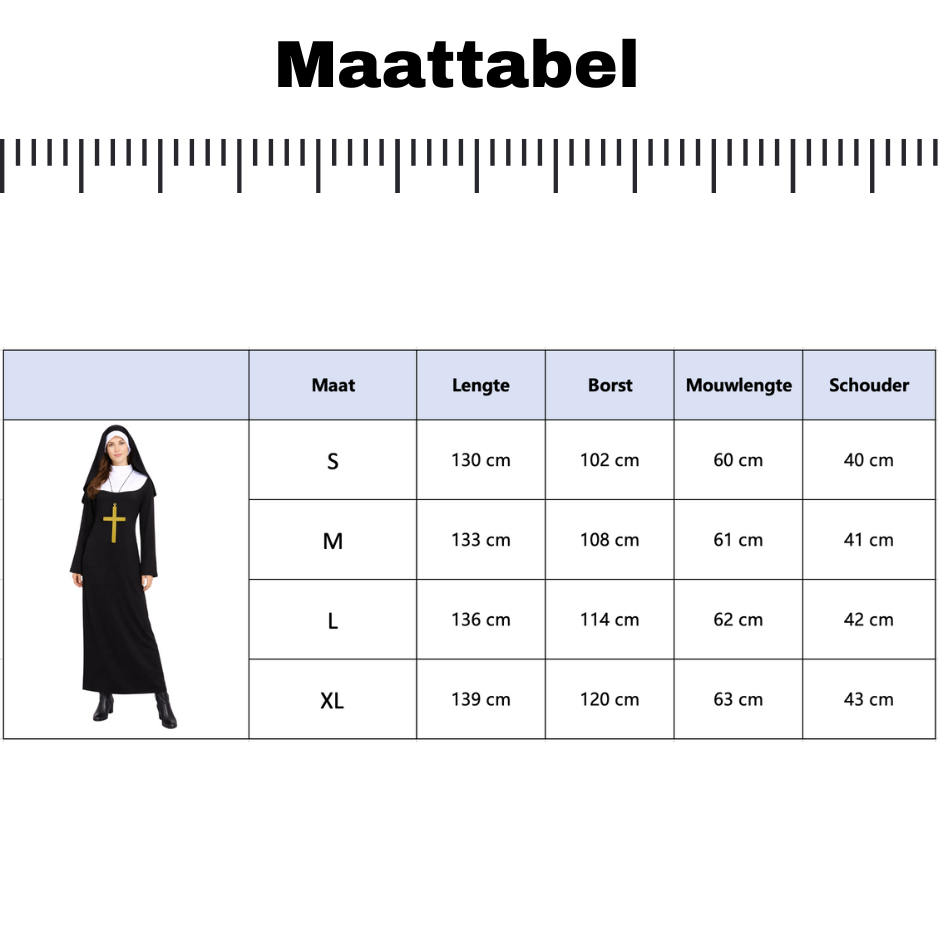Deze nonnen jurk voor dames is verkrijgbaar in 4 maten: